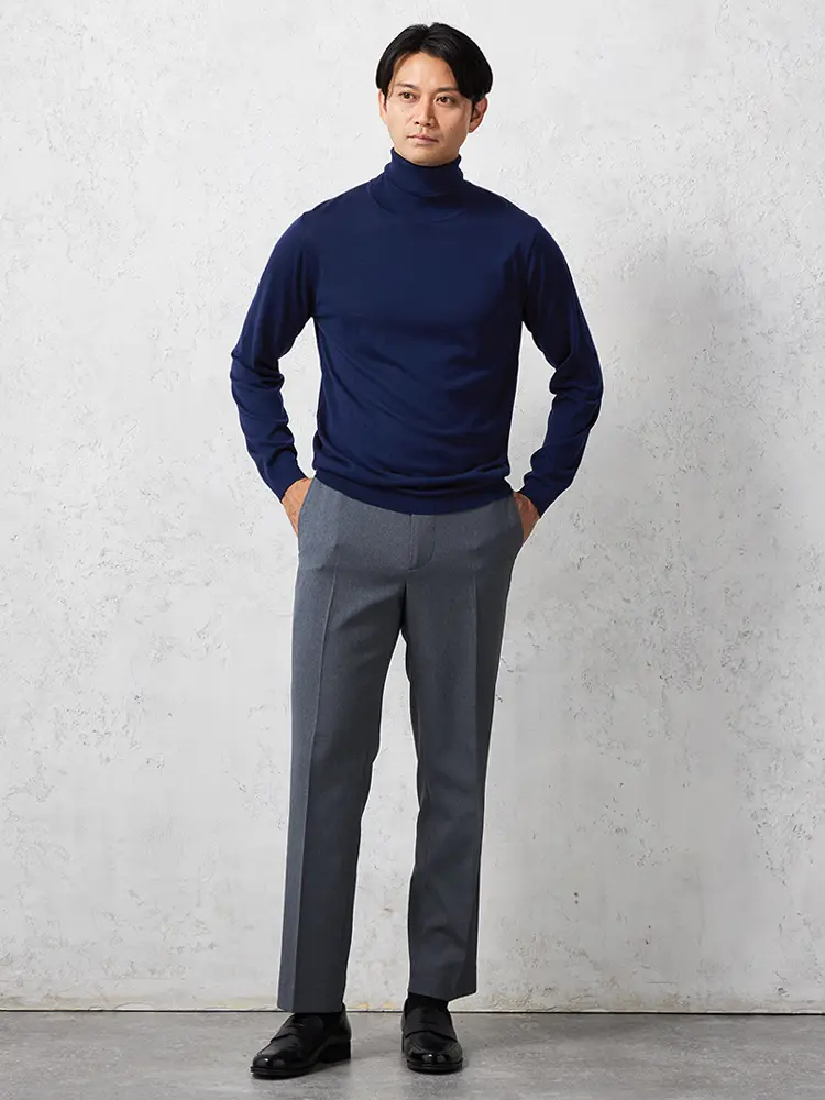 タートルネックならではのウォーム感が秋冬コーディネートにぴったりです。