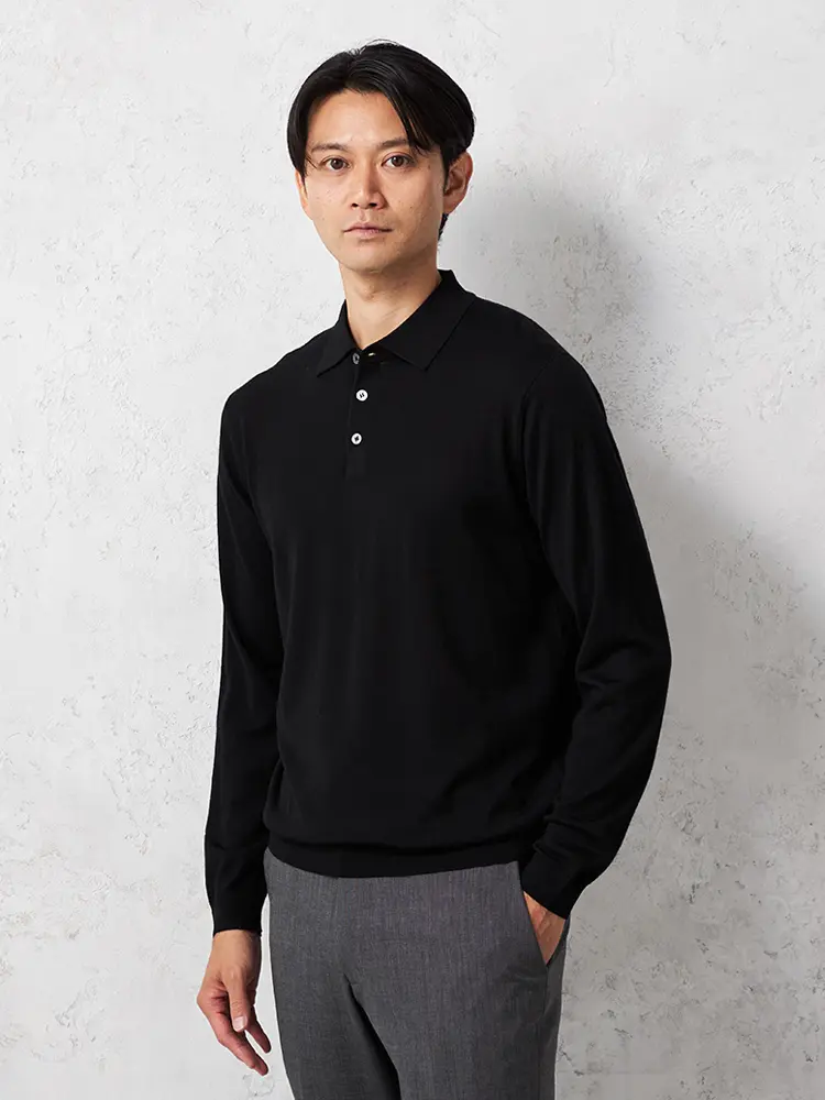 【リッケンバッカーブラック】 梳毛ポロ襟セーター カジュアルインナー ニット 長袖 保温 秋冬
