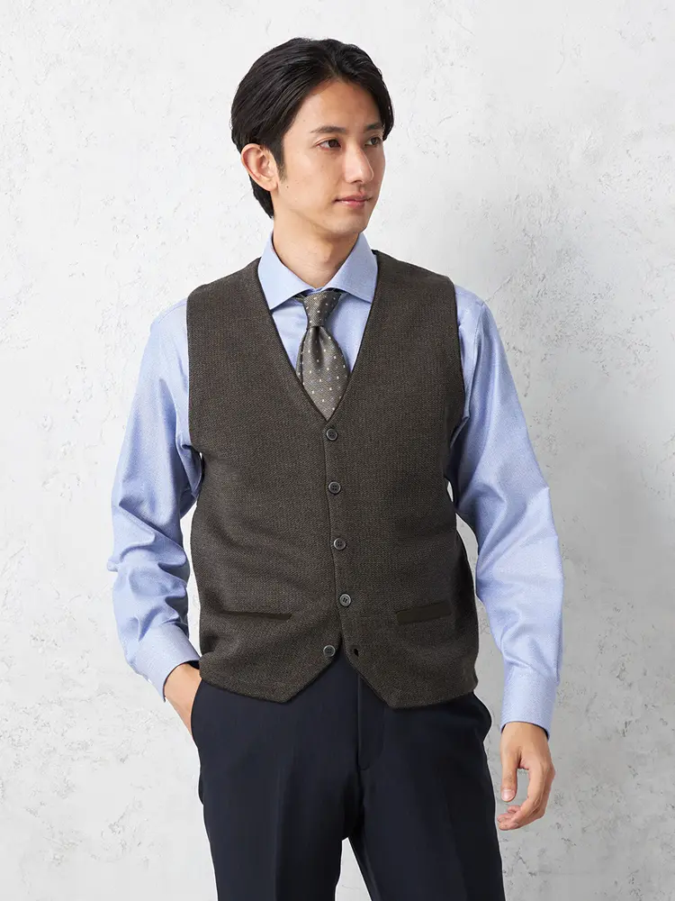 ニット地と中わた素材を組み合わせた上品なベストです。