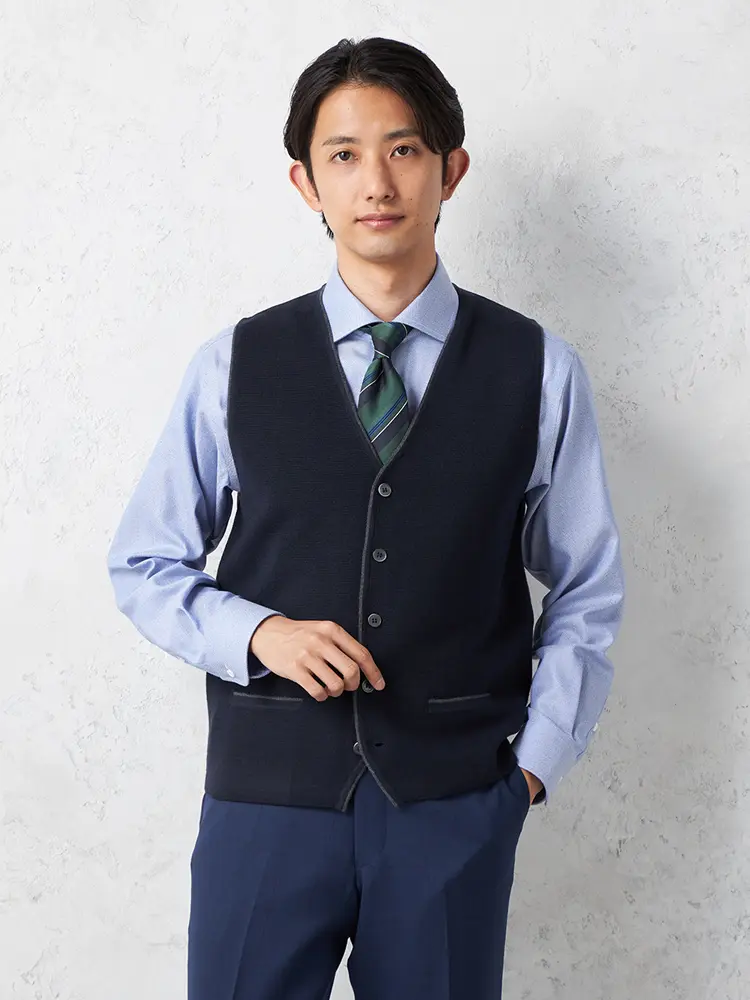 ニット地と中わた素材を組み合わせた上品なベストです。