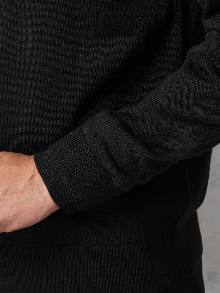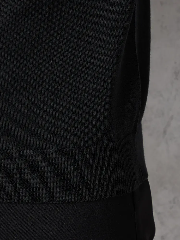 【リッケンバッカーブラック】 梳毛ポロ襟セーター カジュアルインナー ニット 長袖 保温 秋冬