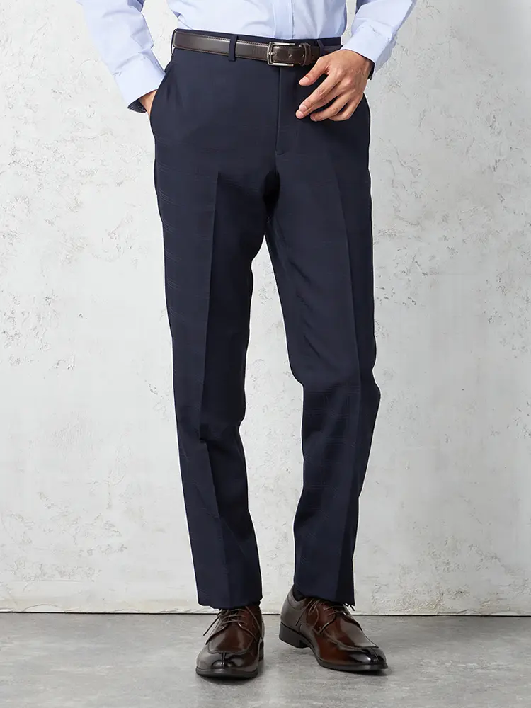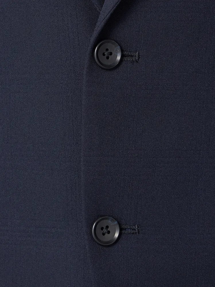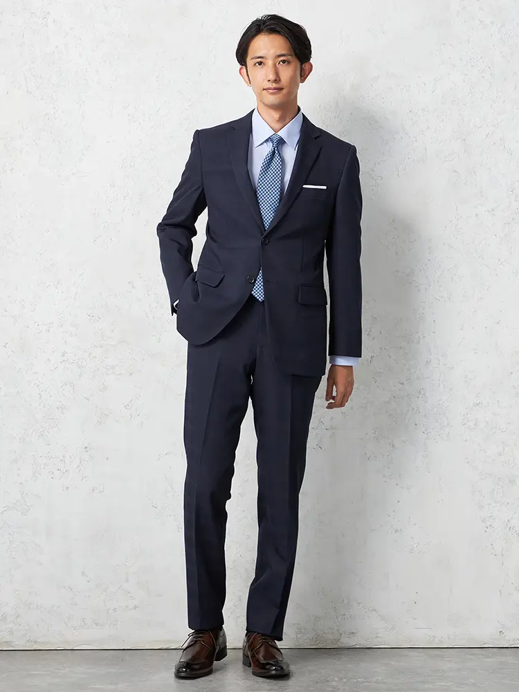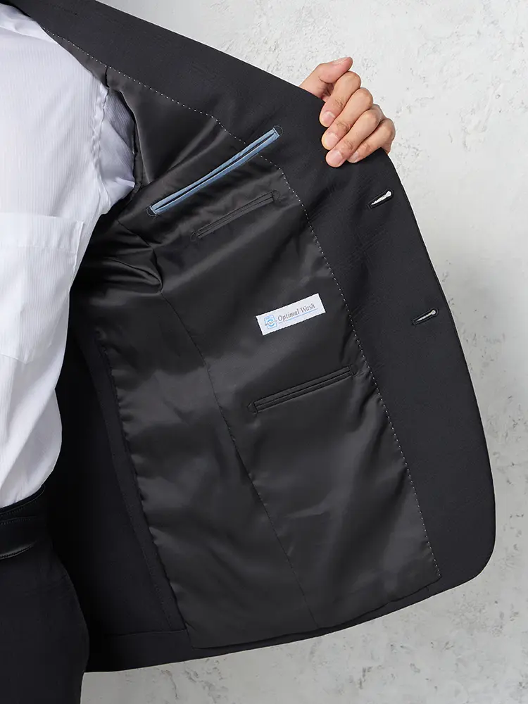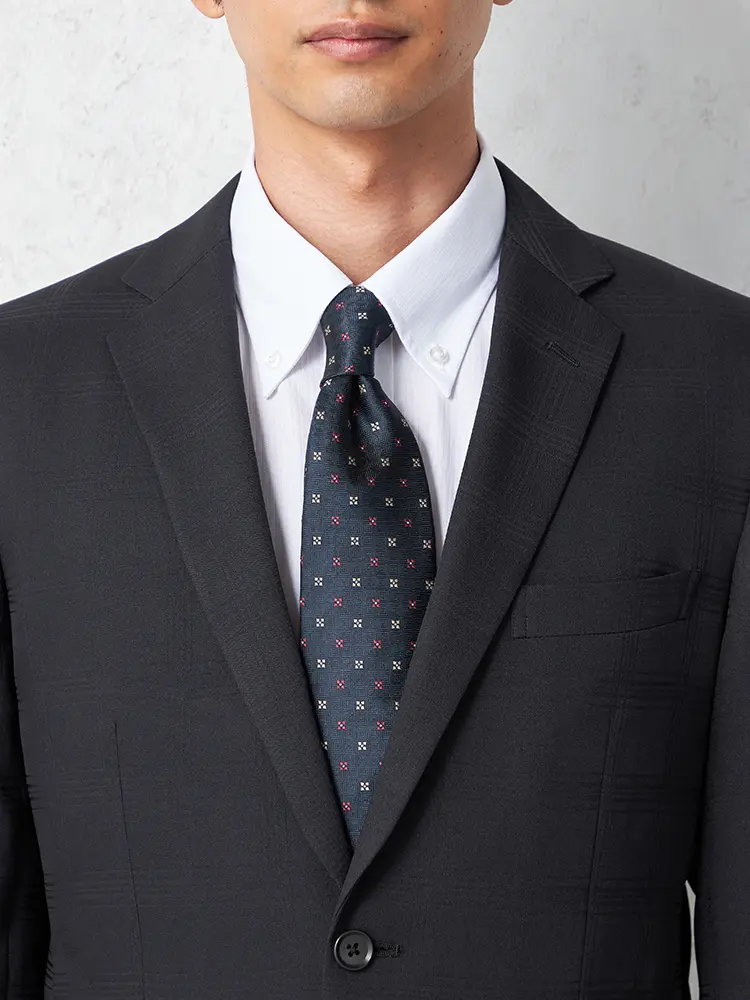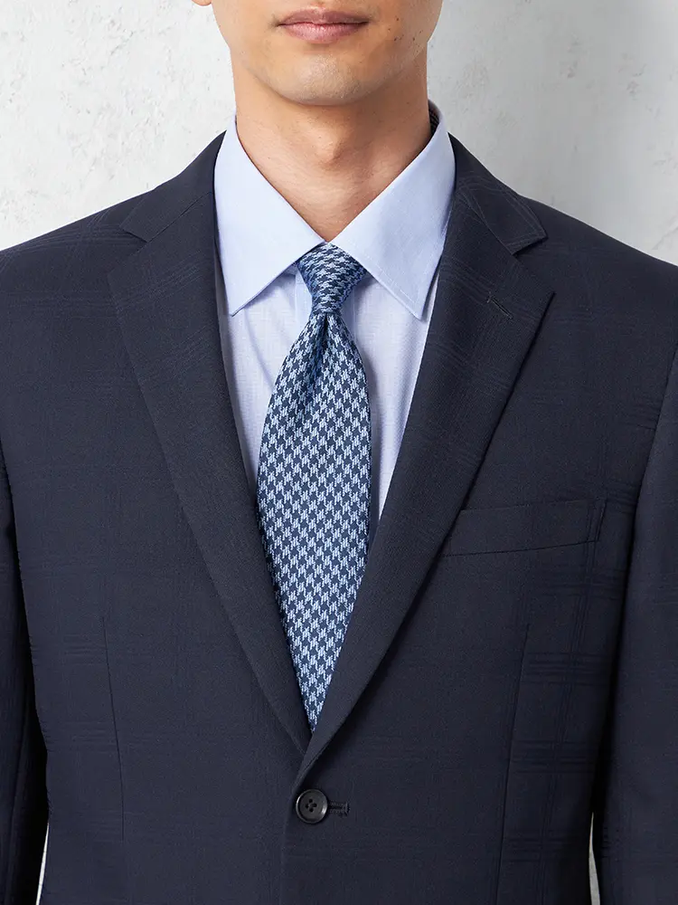 織りの変化によってチェック柄がさりげなく表現された上下ウォッシャブルのスーツ。