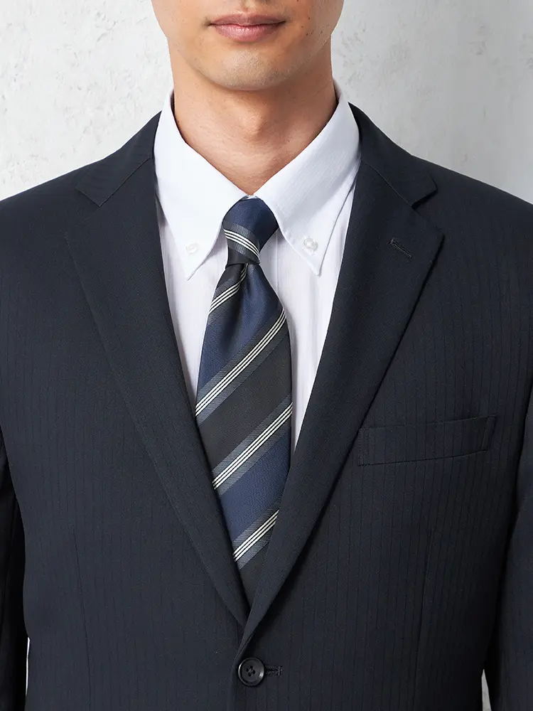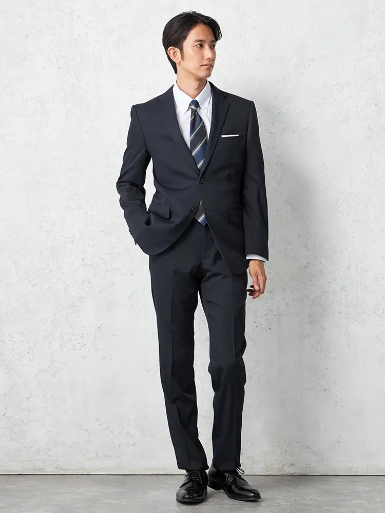 【即納】スーツ 2つボタン【WEB限定】上下ウォッシャブル ネイビー ストライプ