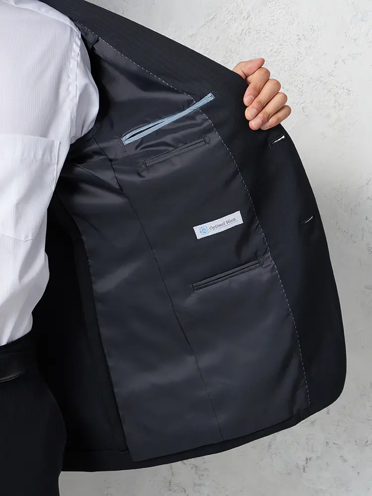 上品さやシャープな印象があり、ビジネスシーンでも好まれる上下ウォッシャブルのスーツ。
