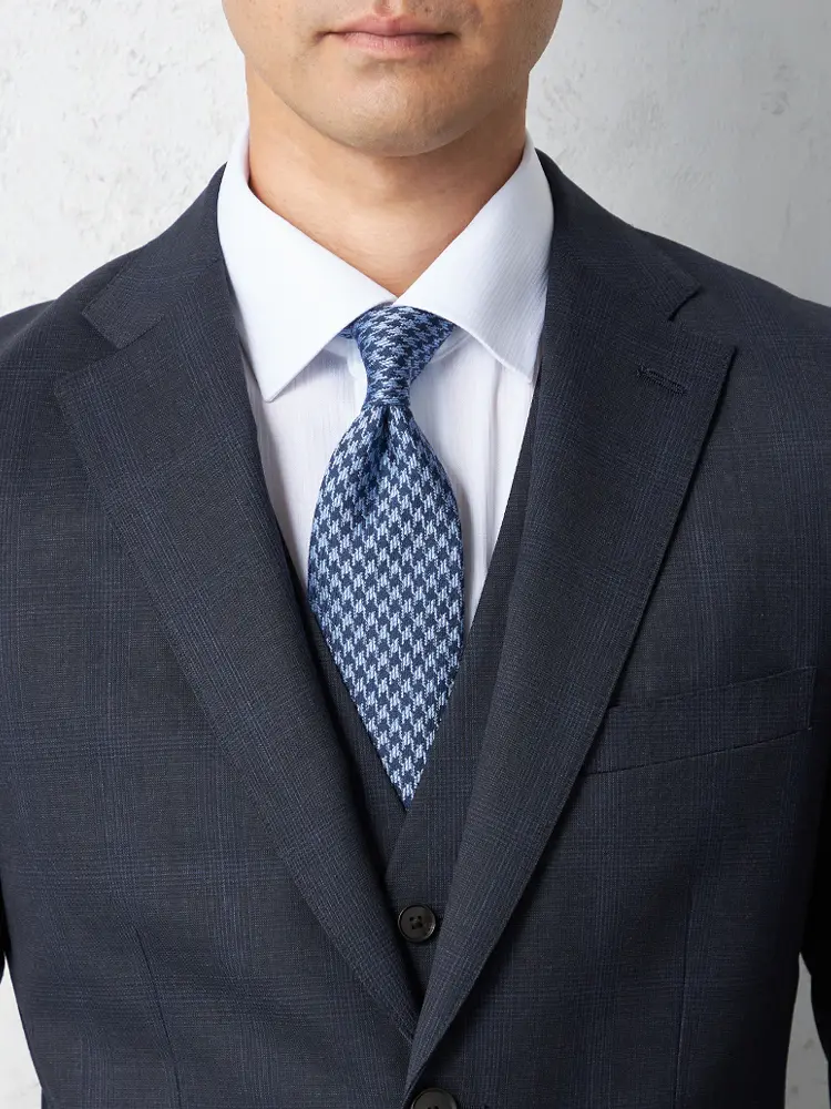 【上下ウォッシャブル】スリーピーススーツ2つボタンウール混ストレッチ・防しわ千鳥格子nero秋冬