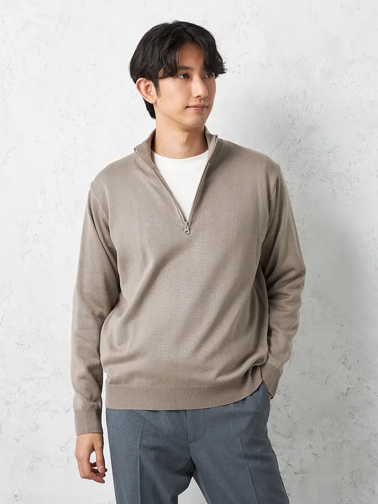 首元にはハーフジップを採用し、ほどよいカジュアルさをプラスしました。