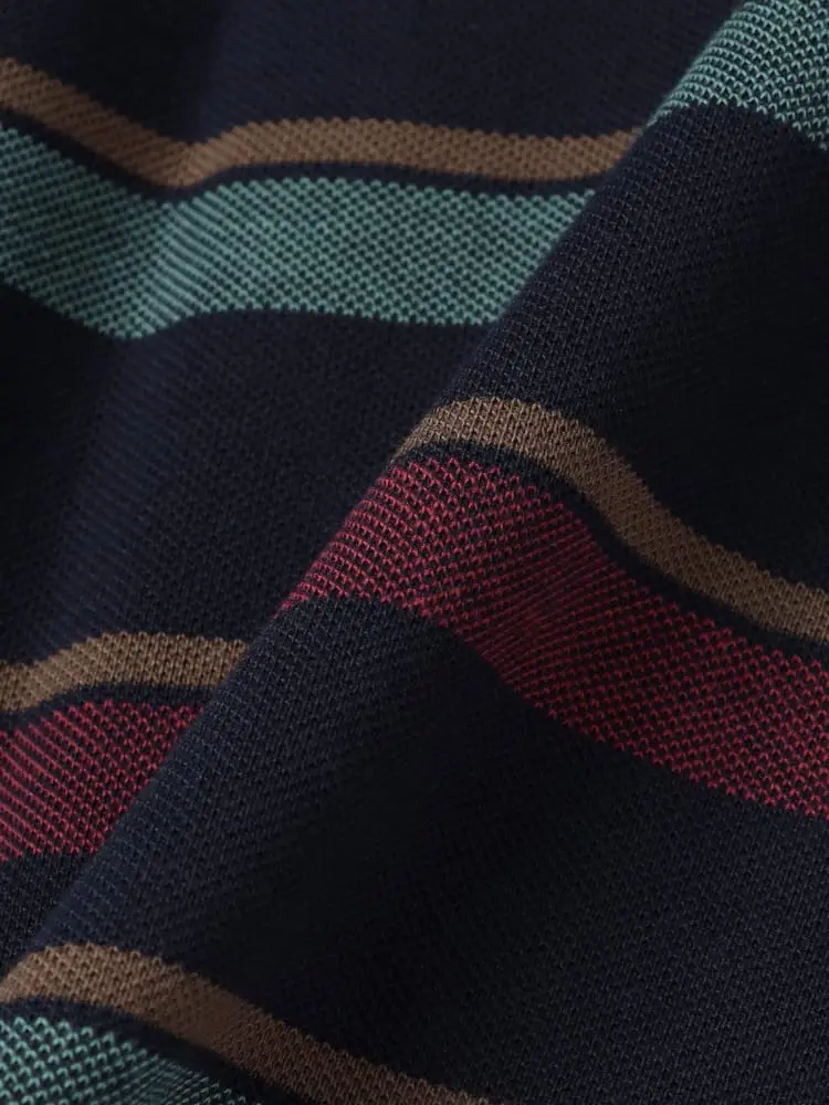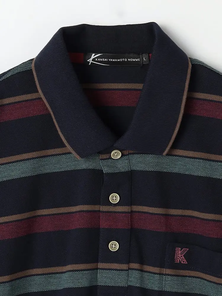 【カンサイ・ヤマモト】ボーダーポロシャツ カジュアルインナー 秋冬(ネイビー)
