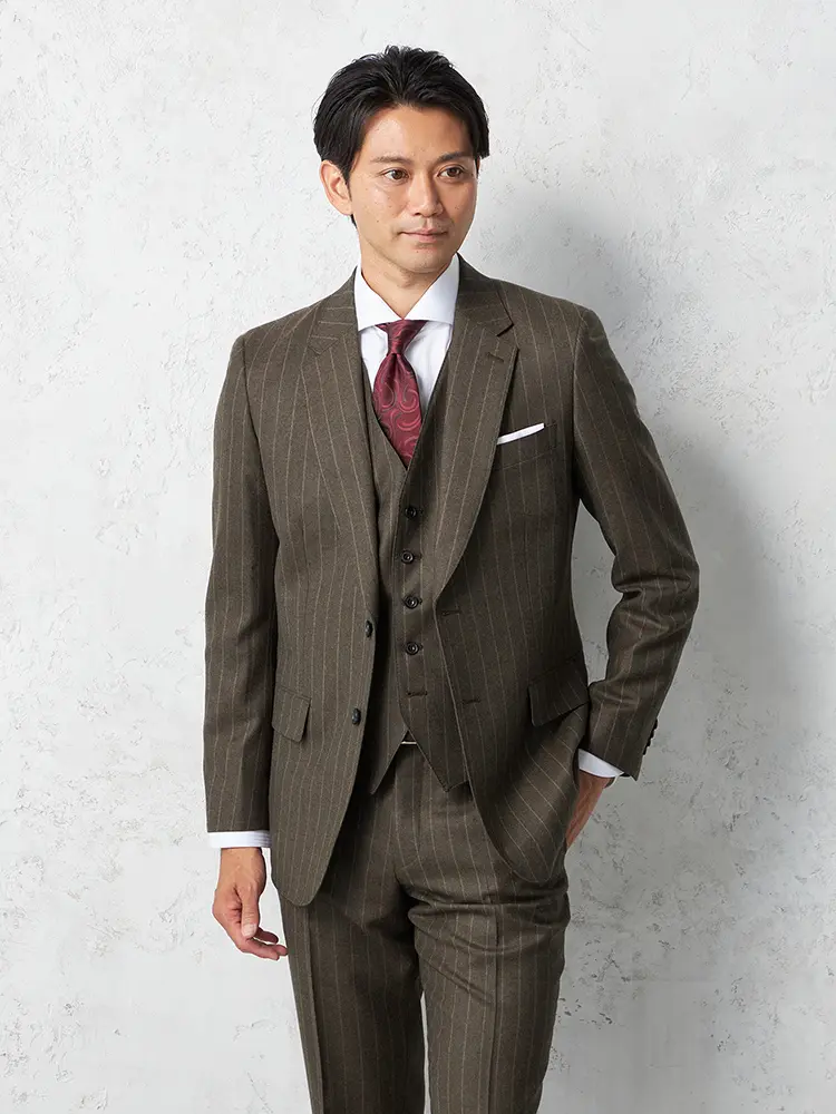 【リッケンバッカーホワイト】 ジョンフォスター スーツ 2つボタン カーキー ストライプ ノータック 秋冬