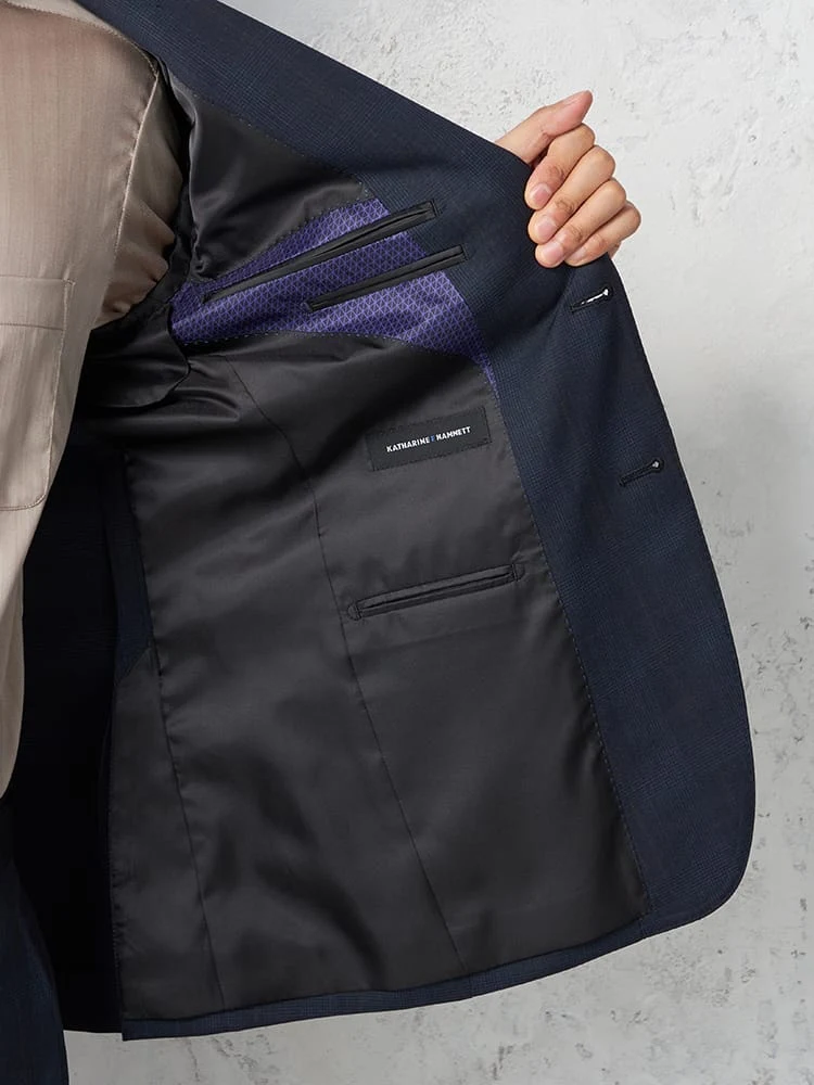 【KATHARINE E HAMNETT-キャサリン・イー・ハムネット-】スーツ 2つボタン 上下ウォッシャブル 盛夏対応 ネイビー チェック 春夏