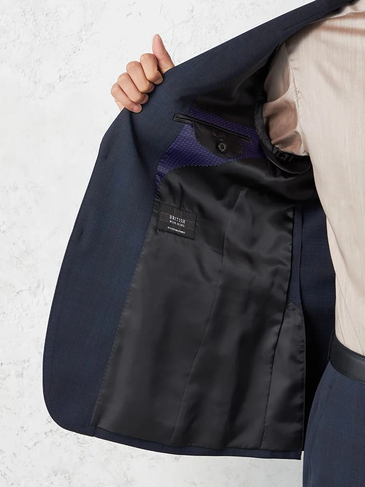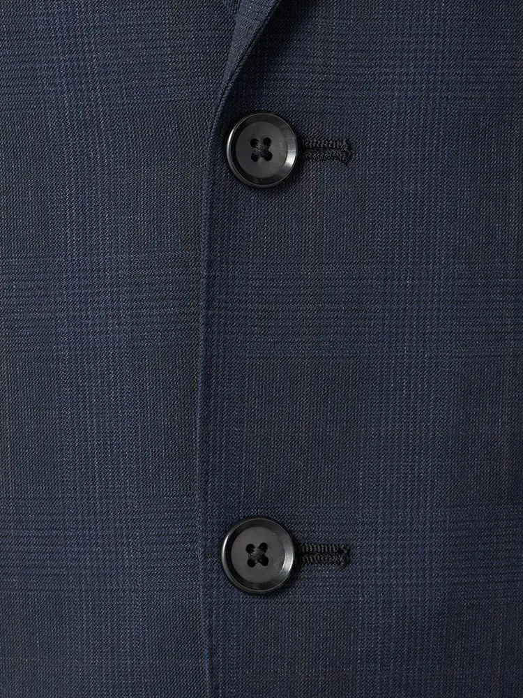 ネイビーを基調とした、チェック柄の2つボタンテーラードジャケットです。