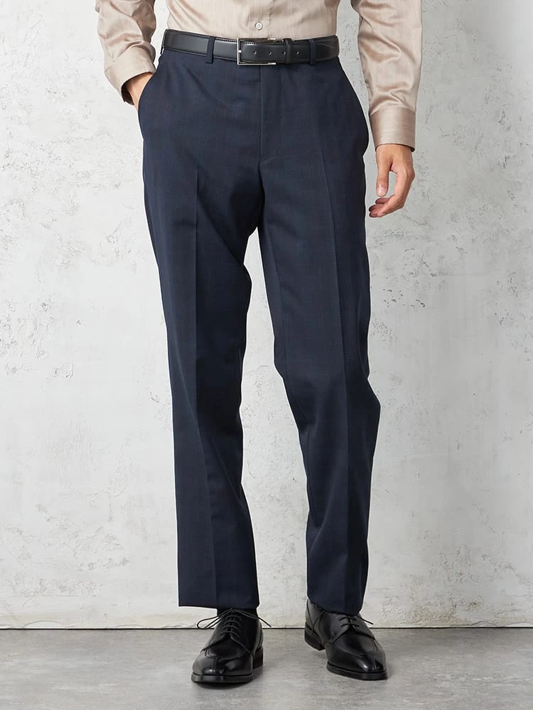 【KATHARINEEHAMNETT-キャサリン・イー・ハムネット-】スーツ2つボタンネイビーチェック上下ウォッシャブルウール混