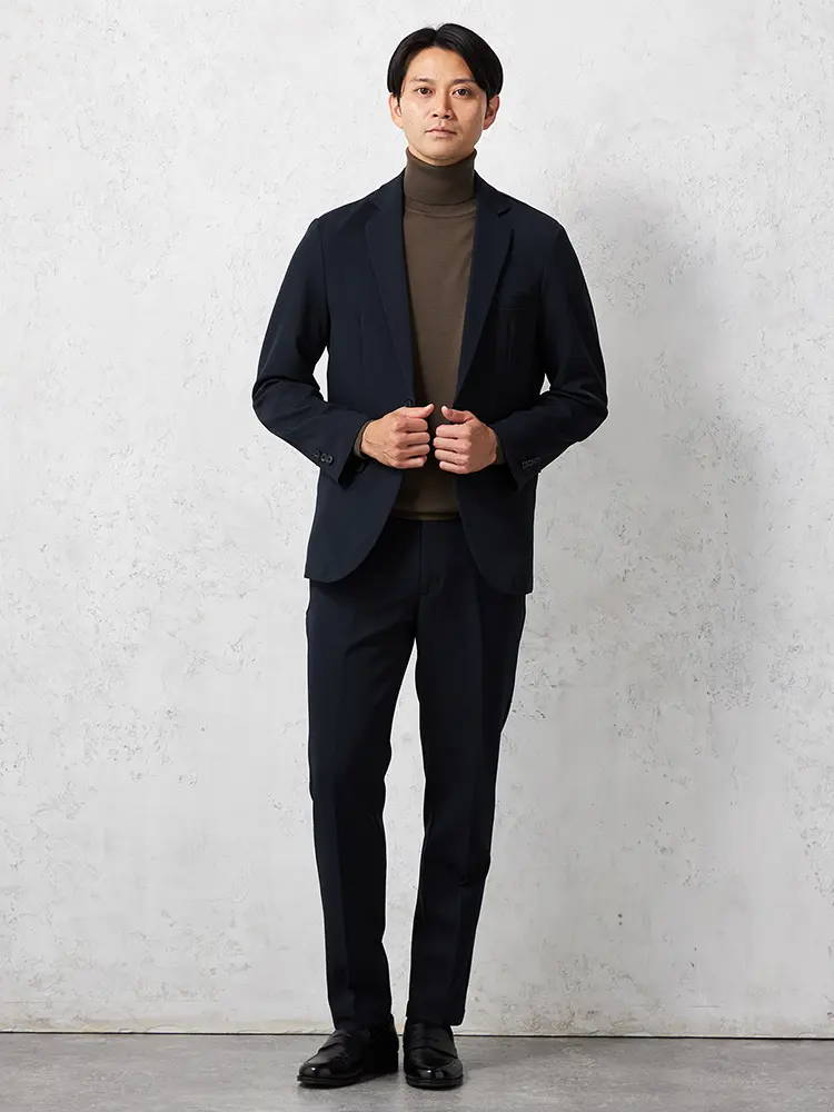 スーツらしさを残したカジュアルすぎないシルエットが特徴。