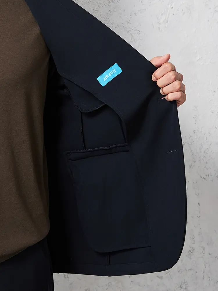 【AIR SUIT】 セットアップ ジャケット 2つボタン 防シワ(イージーケア) ストレッチ 通年 吸汗速乾 UVカット(ブラック)