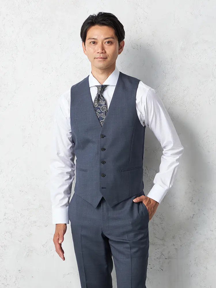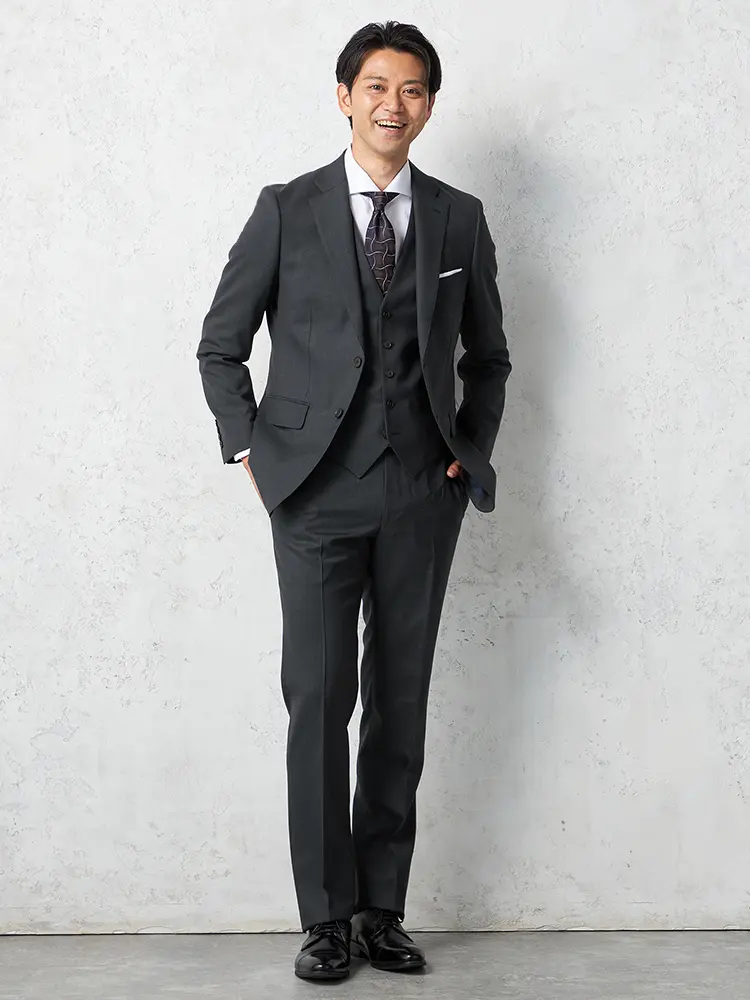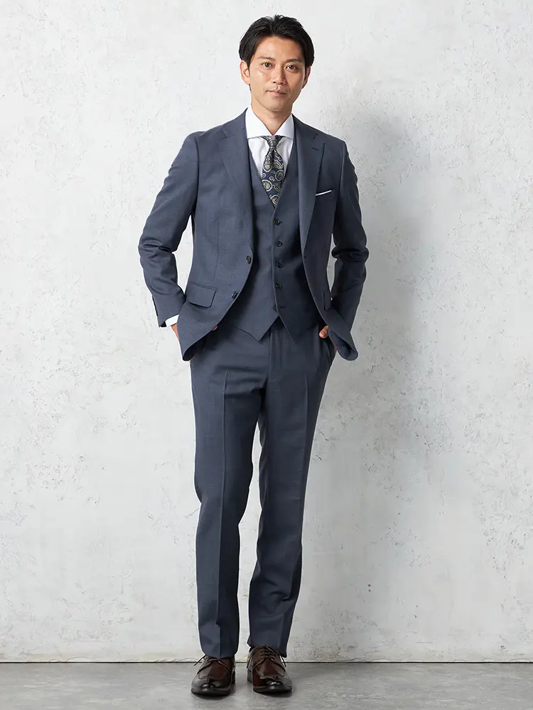 ビジネスシーンでもオケージョンでも重宝するスリーピーススーツ。