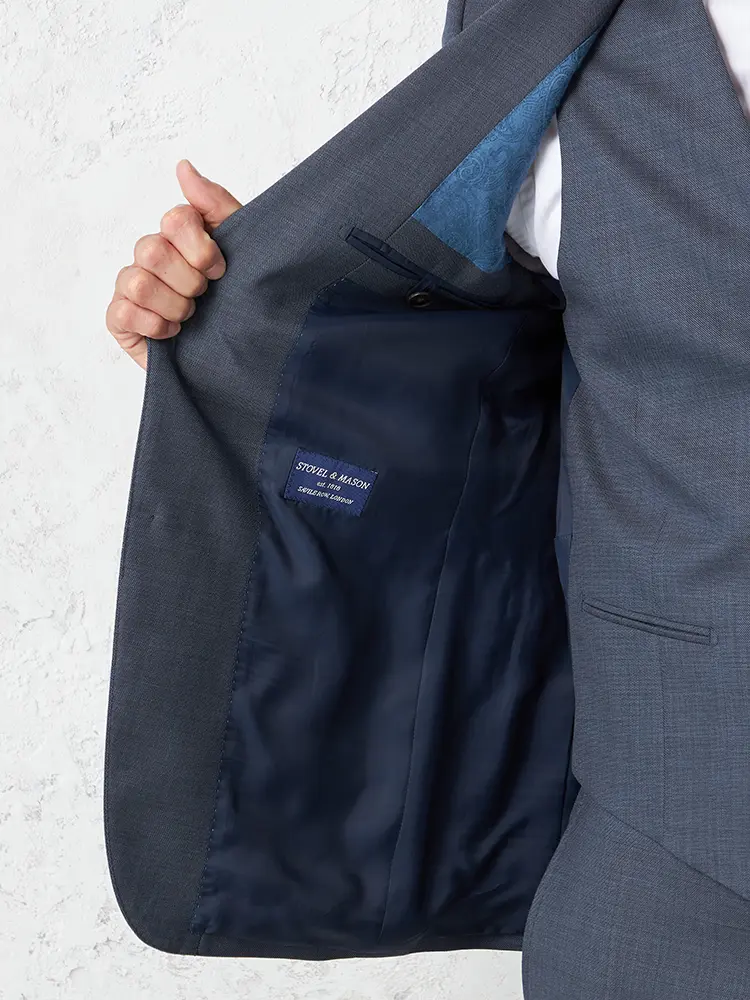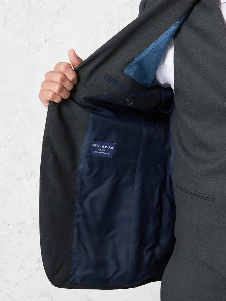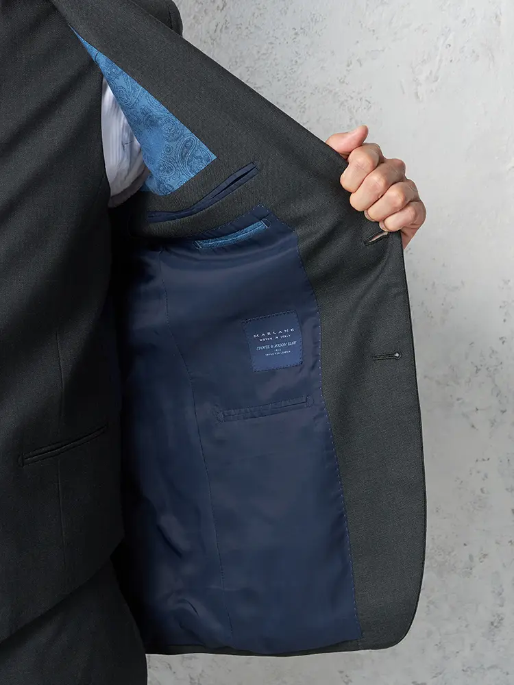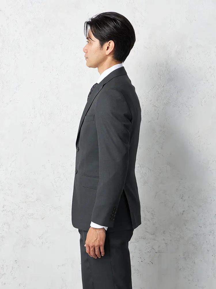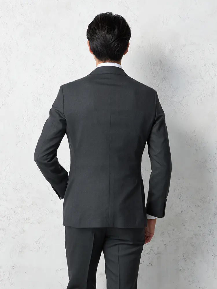ジャケットは背抜き仕立て、裏地にはすべりが良いキュプラを採用。