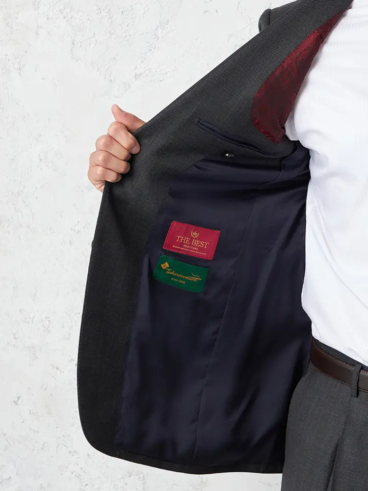 上着は型くずれしにくい総毛芯仕立て、胴裏、袖裏にはキュプラを使用。