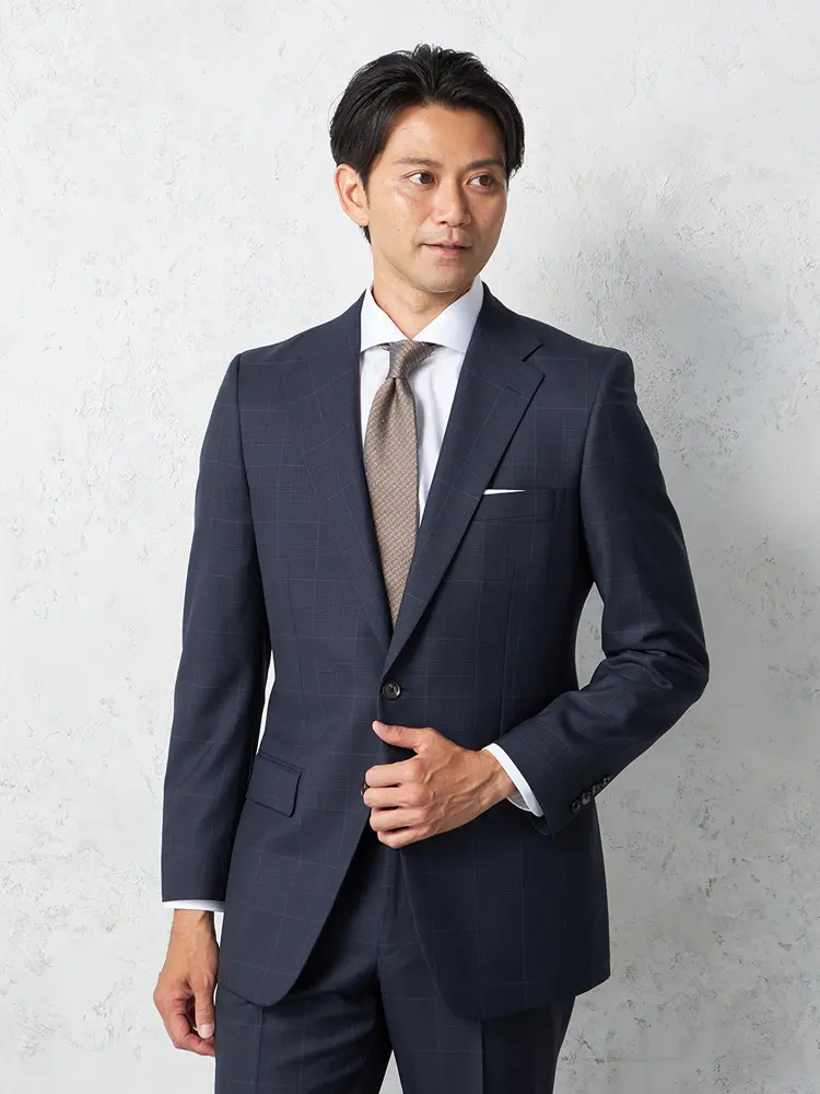 【TAHARA CONCERT】 2ピース REDA スーツ 2つボタン チェック ワンタック 秋冬(ネイビー)