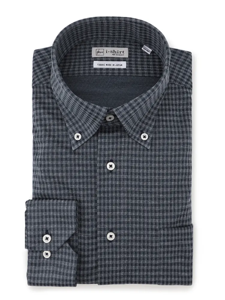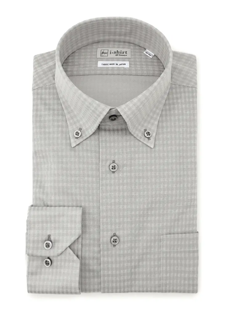 【アイシャツ】 長袖Yシャツ ボタンダウン チェック 吸汗速乾 ストレッチ 形態安定 通年(L.グレー)