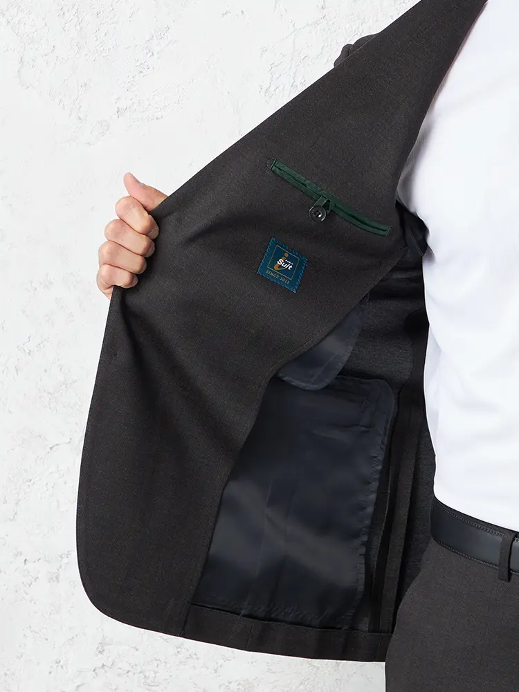 ウインドペン柄をさりげなくのせたセンターベント、半裏仕立てのスーツ。