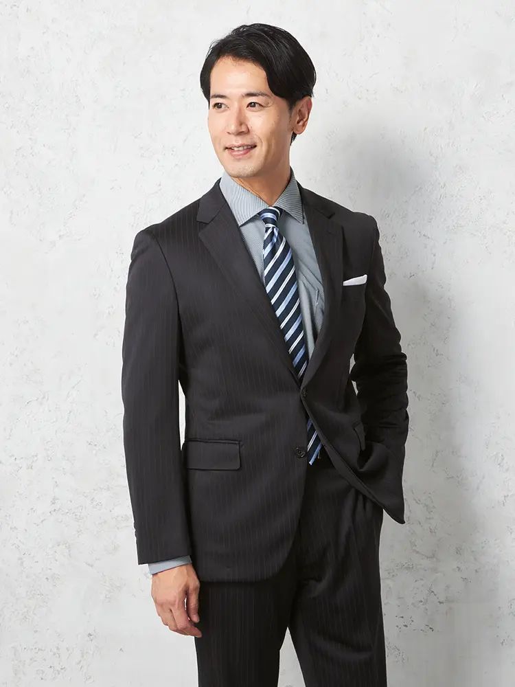 【上下ウォッシャブル】スーツ2つボタンイージーケアネイビーストライプフュージョンクラブ