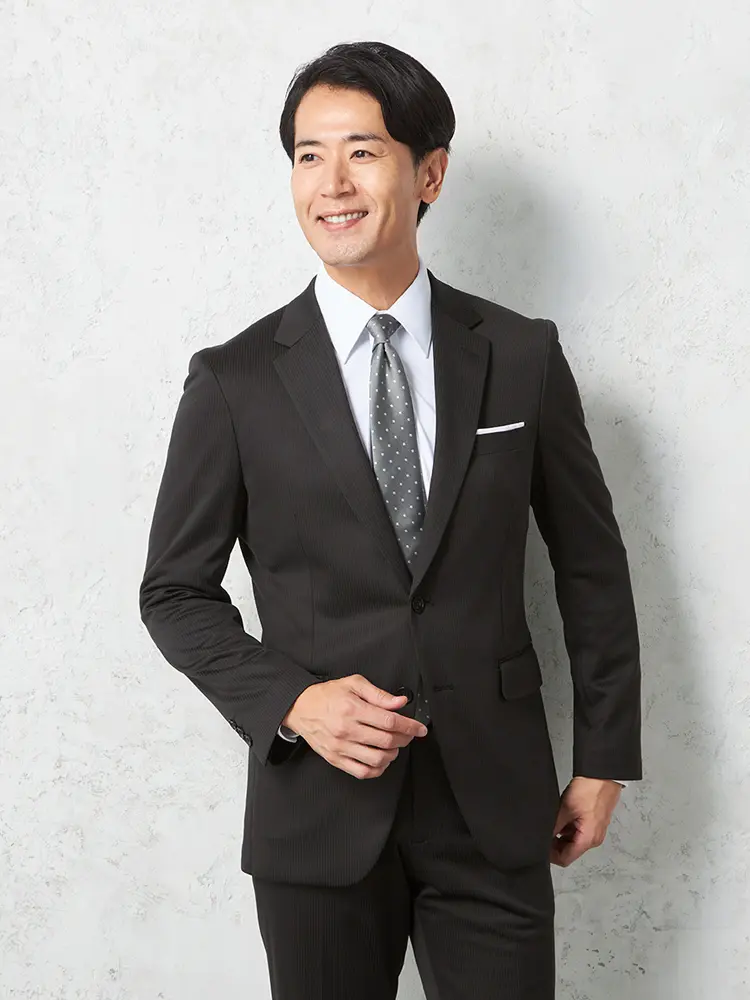 【上下ウォッシャブル】スーツ2つボタンツーパンツイージーケアブラックストライプフュージョンクラブ