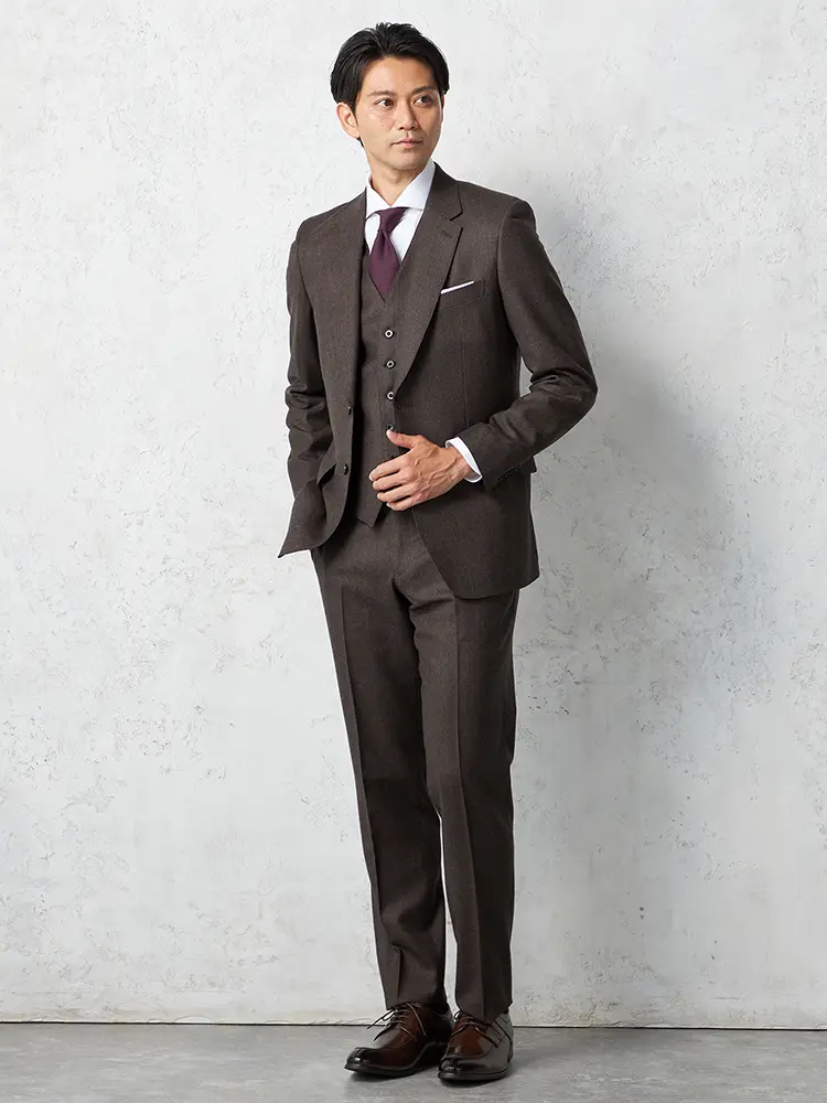 【S&M BLUE LABEL】 3ピーススーツ 2つボタン パンツウォッシャブル ノータック 秋冬