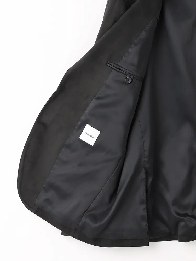 ストレッチ性のあるスウェードニット素材を使用した、2つボタンのテーラードジャケットです。