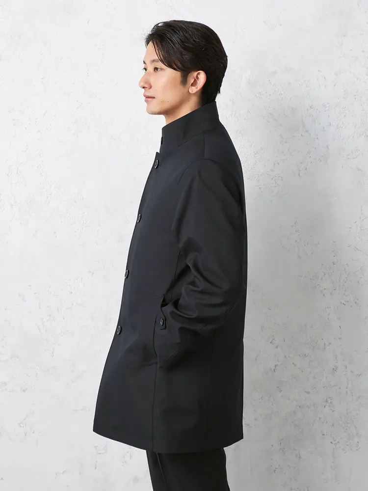 【RUCKEN BACCHAR】 フェイクウール スタンドカラーコート ヘリンボン 保温 ライナー付 秋冬
