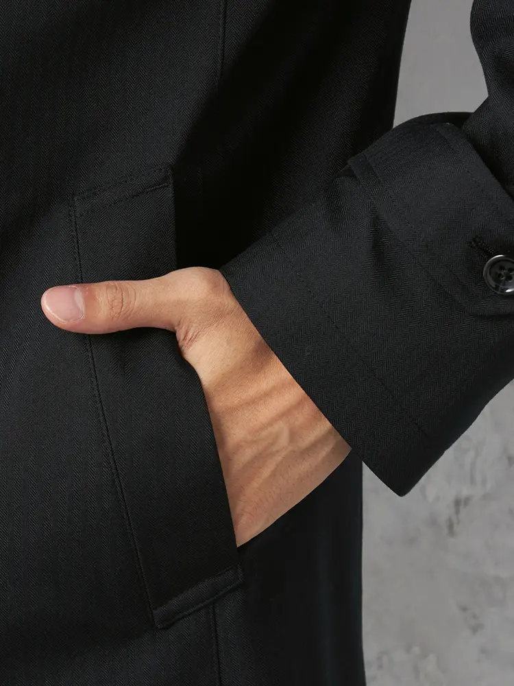 ヘリンボーン調の織り柄が表情をさりげなくプラスします。