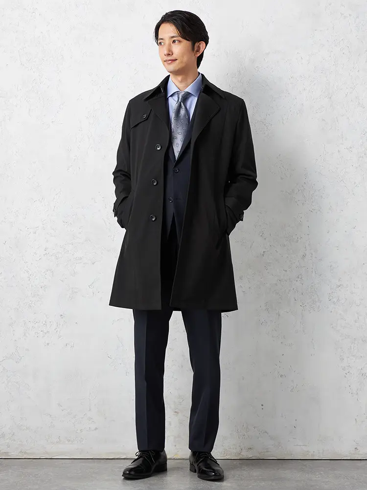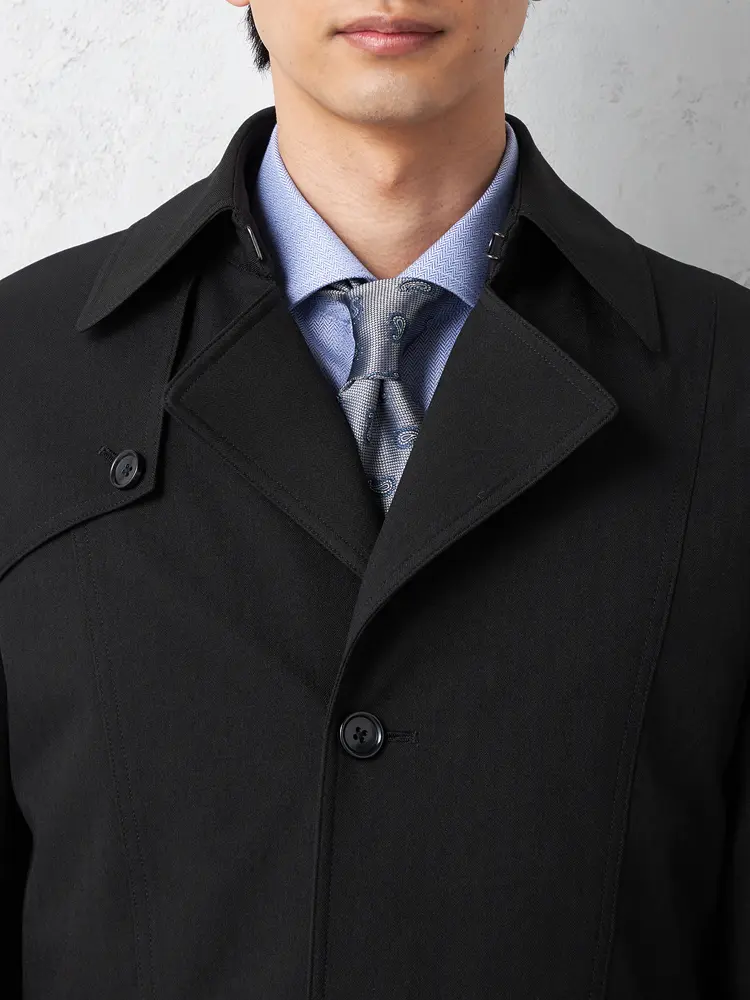 【NERO】 セミトレンチコート ライナー付 コート ヘリンボン 撥水加工 ストレッチ 秋冬(ブラック)