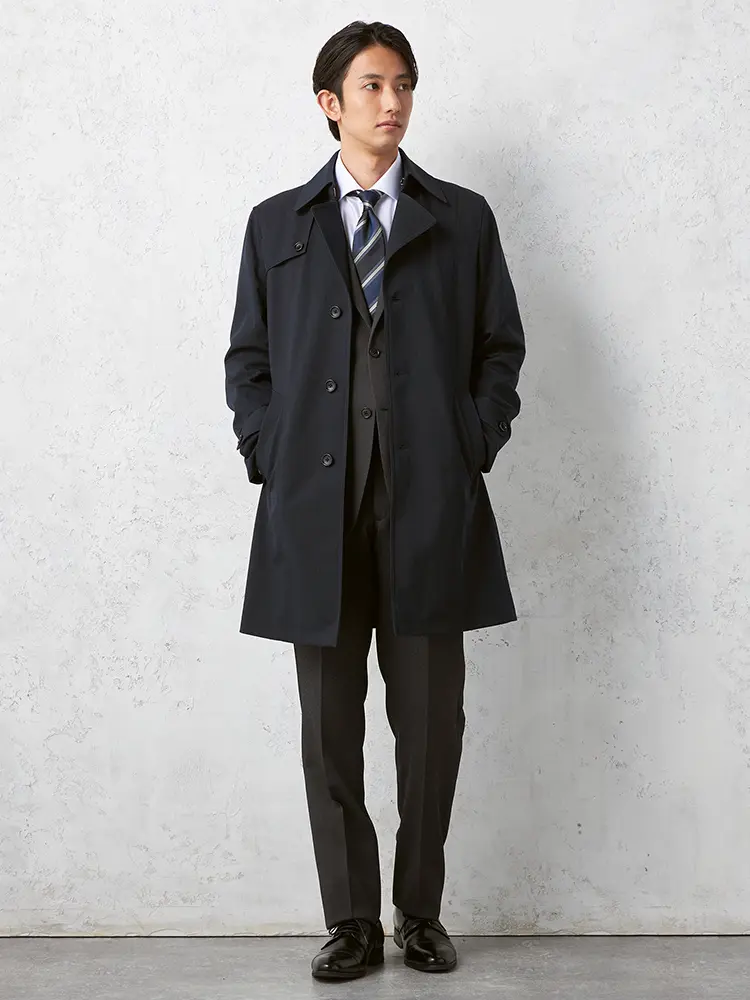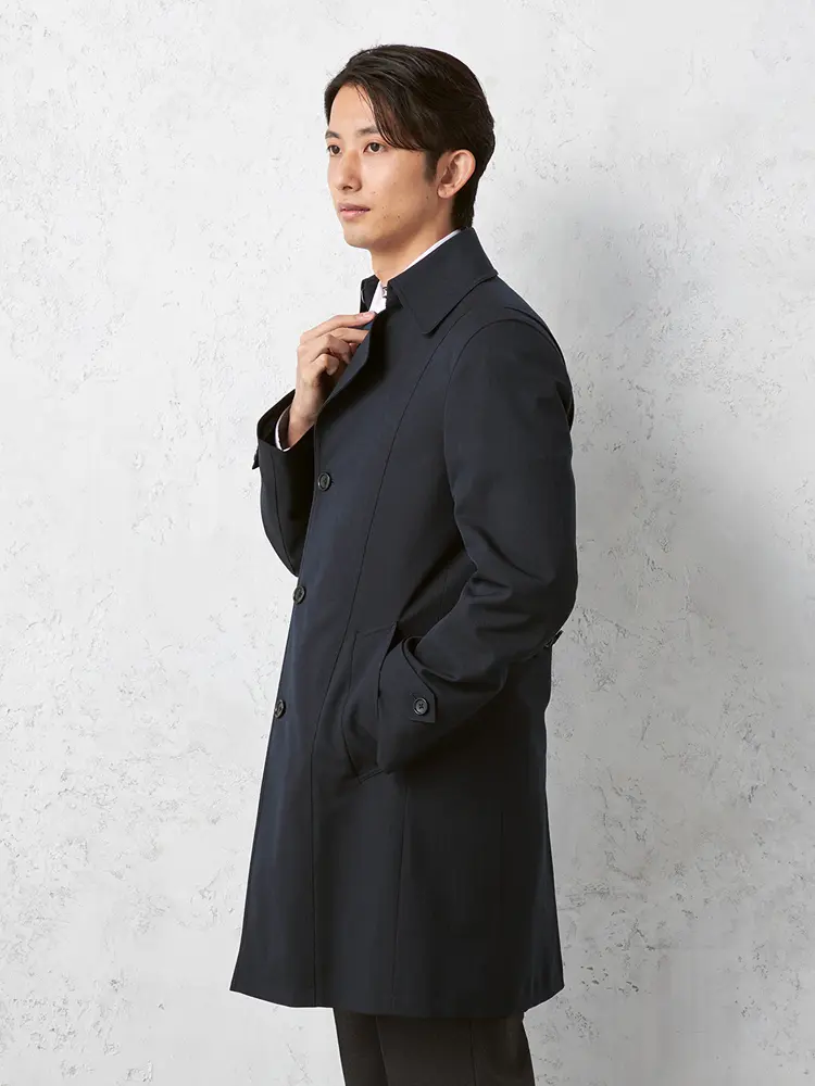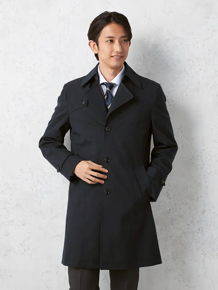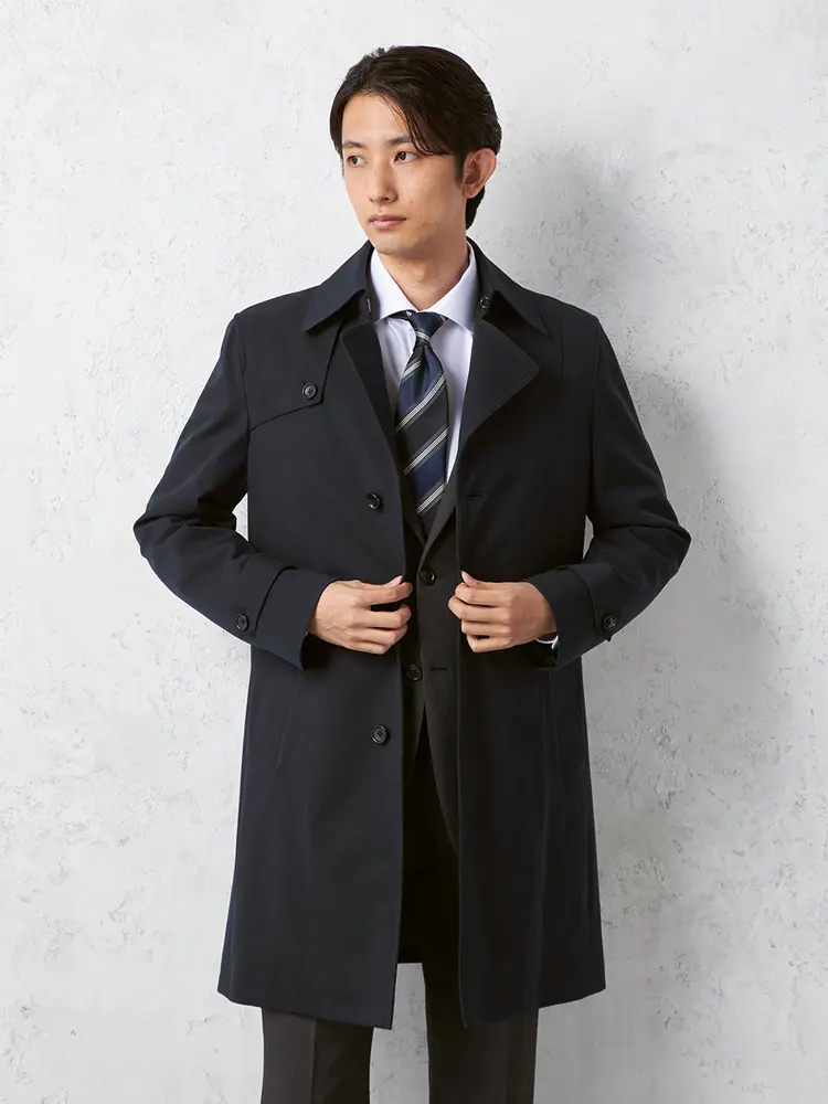 【撥水加工】ステンカラーコートストレッチ無地フュージョンクラブ秋冬