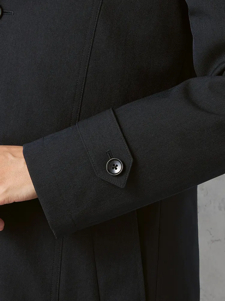【撥水&防風】シングルセミトレンチAラインコートライナー付ヘリンボンnero秋冬