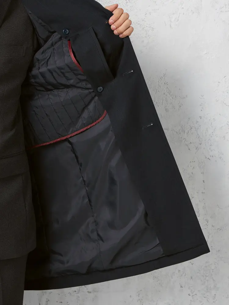 ベストのライナーが付属した防風仕様のステンカラーコートです。