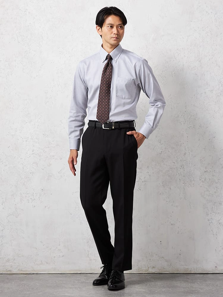 ご自宅ではもちろん、オフィスで着られるきちんとさを兼ね備えたベーシックなアイテム。