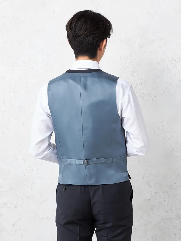 上品なネイビーがビジネスから式典まで清潔感を演出します。