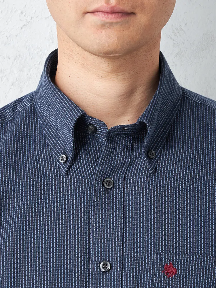 【POLOBCS】シアサッカーストライプボタンダウンカジュアルインナーシャツ長袖ストライプ春夏