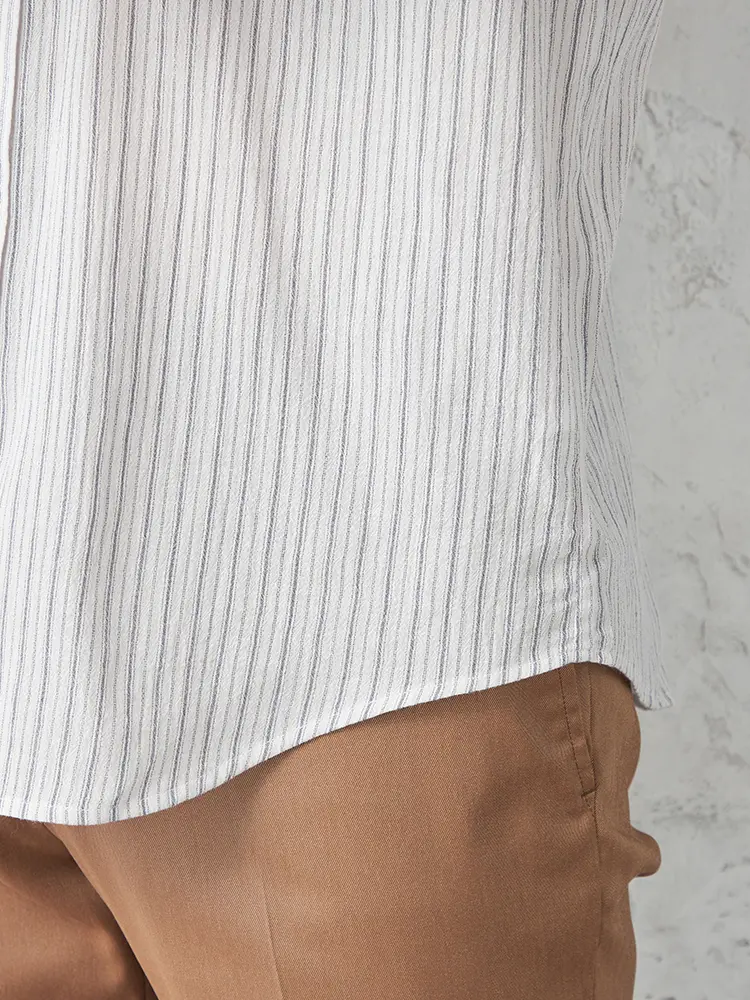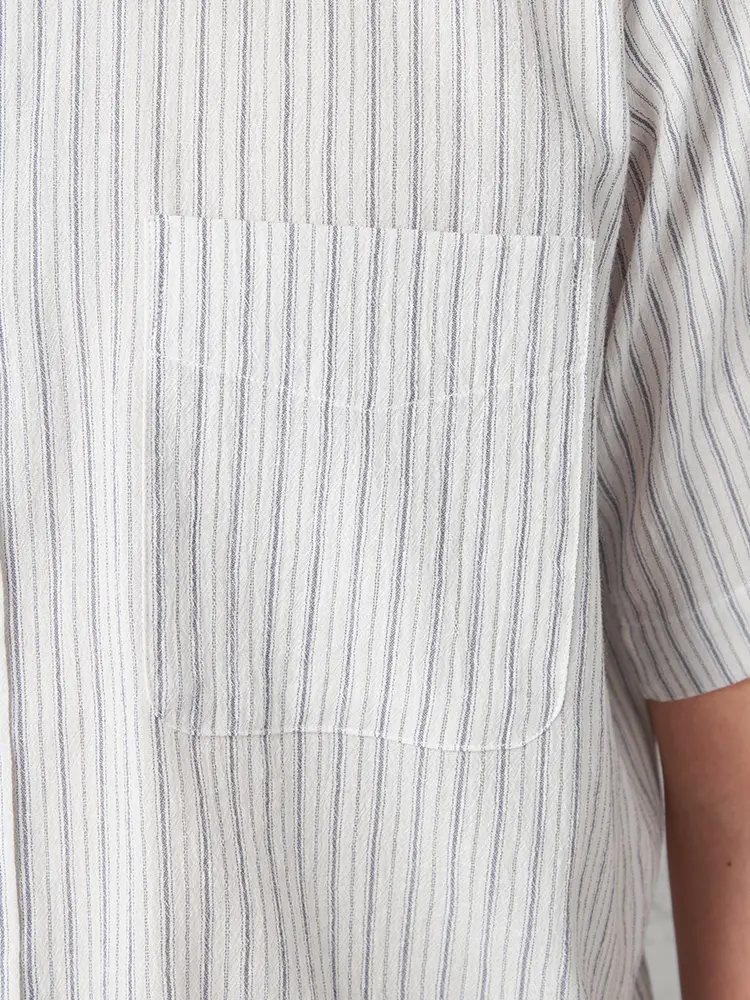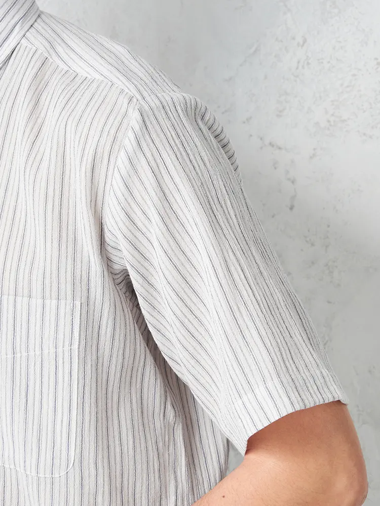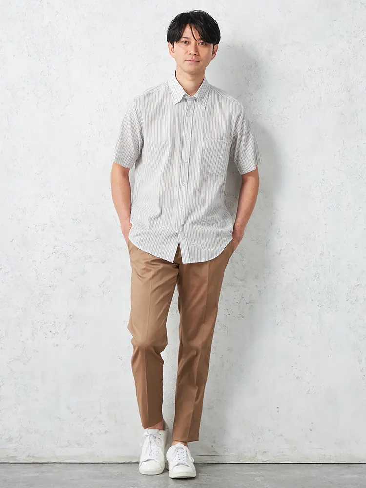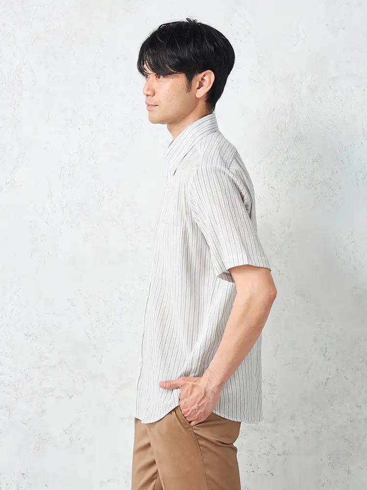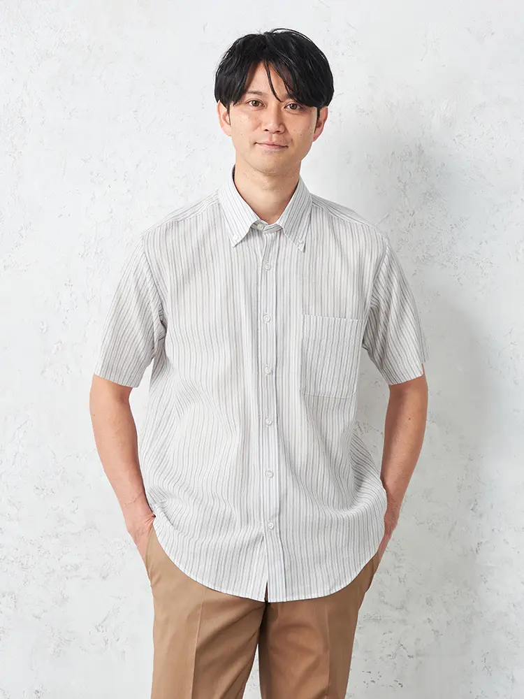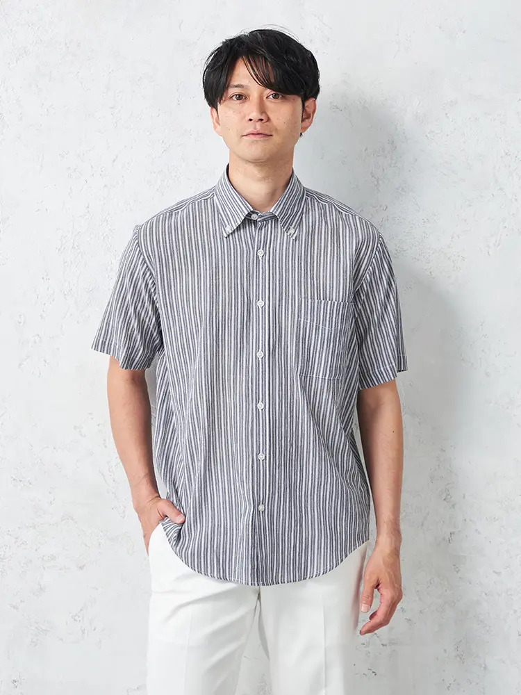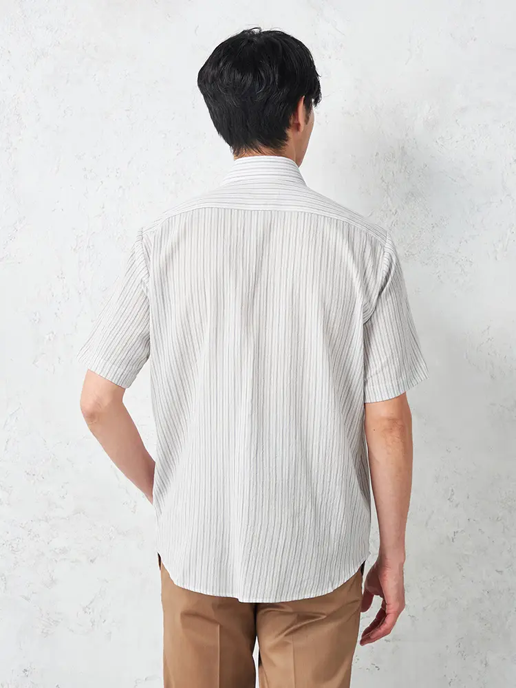 清潔感のある配色が涼やかなストライプ柄半袖シャツ。