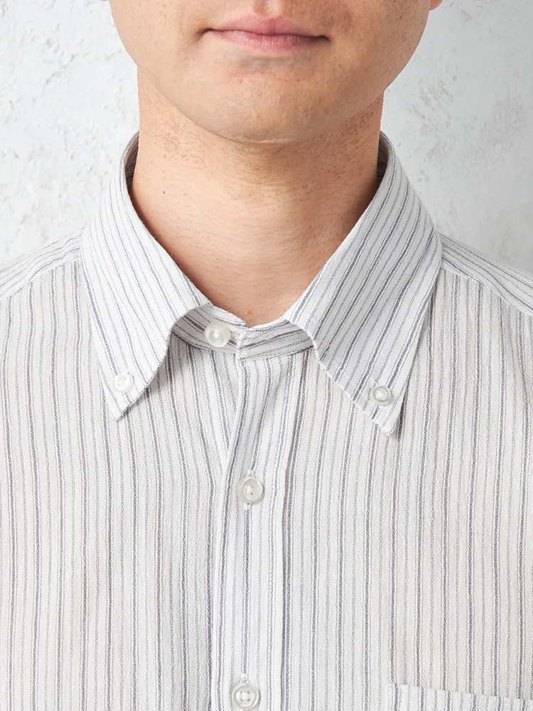 • S.ブルー 【リッケンバッカー】 クレープ ボタンダウン カジュアルインナー シャツ 半袖 ストライプ 春夏 | はるやま公式通販