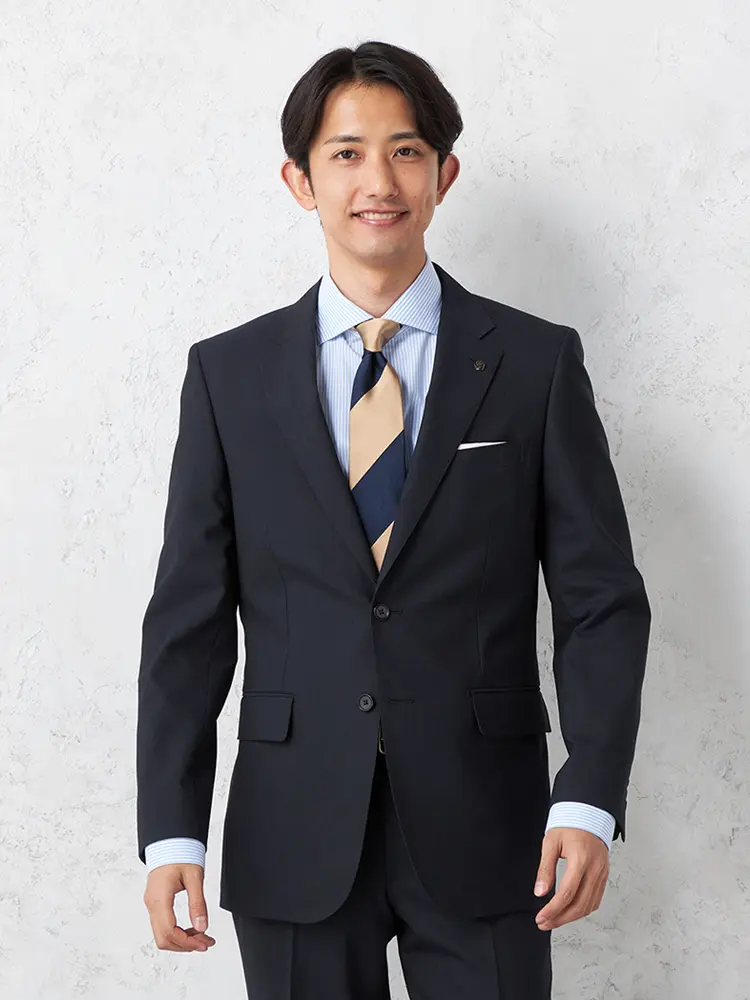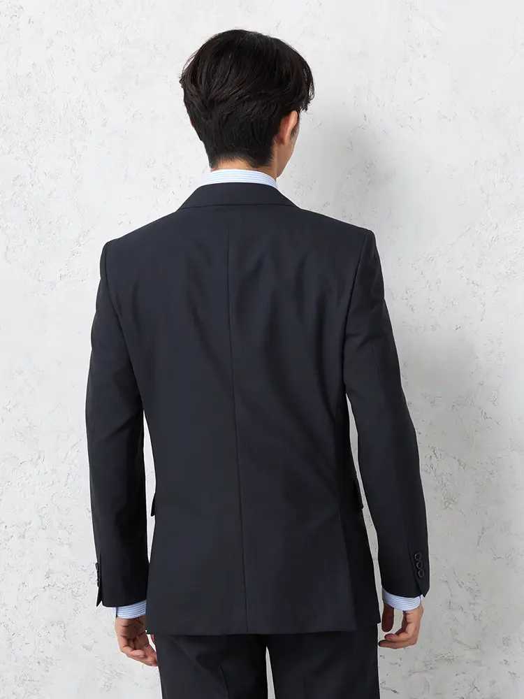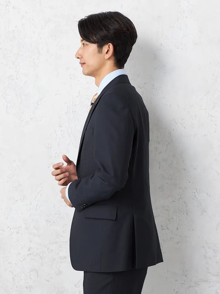 2つボタンのジャケットは背抜き仕立てとサイドベンツで軽やかな着心地です。