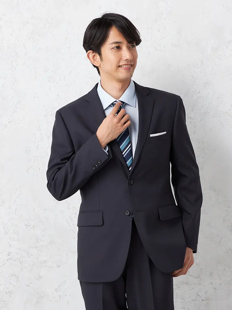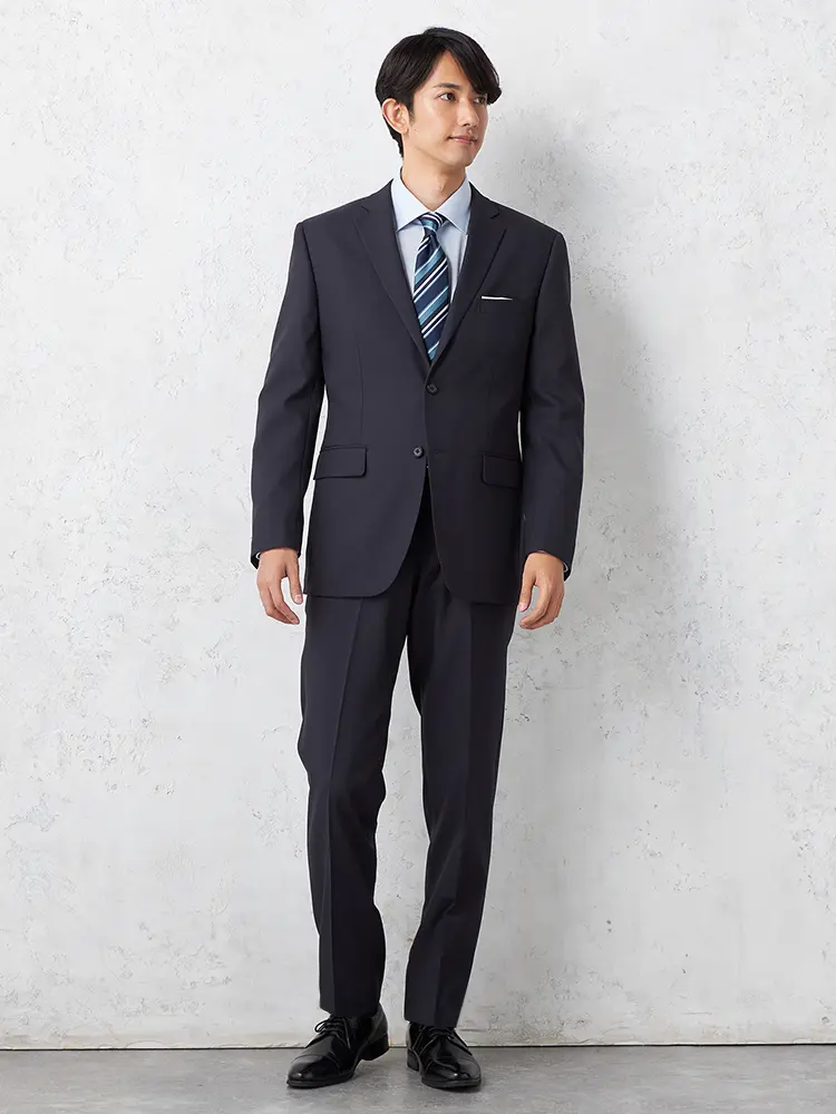 【即納】スーツ2つボタン【WEB限定】上下ウォッシャブルネイビーストライプ