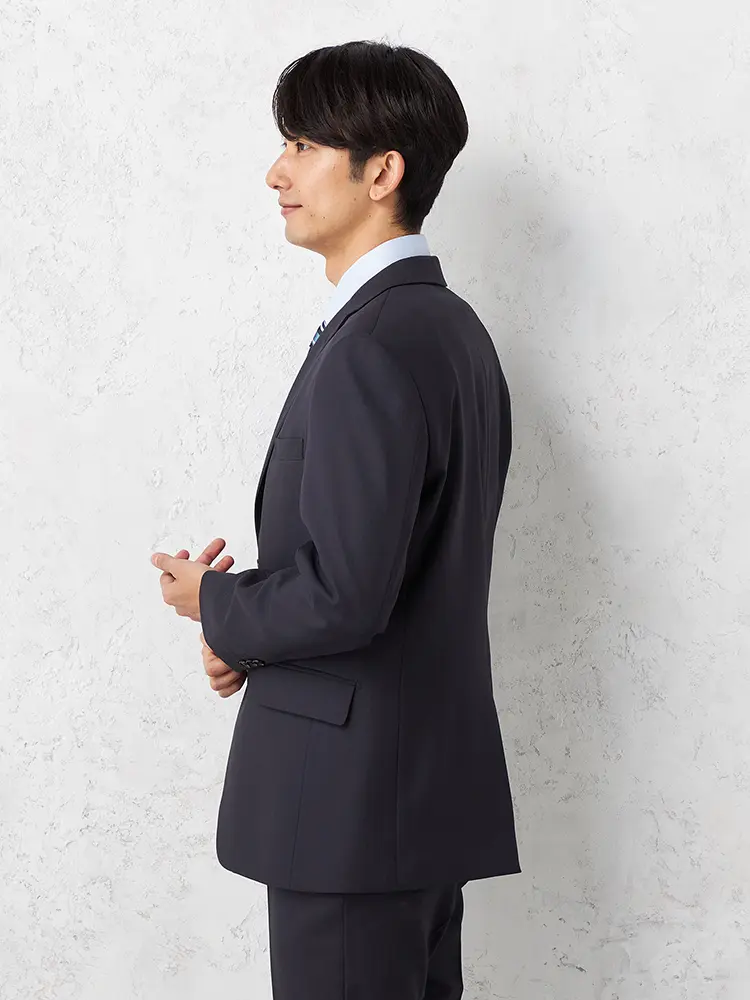 切り込みが1本のセンターベントデザインです。細身でスッキリとしたシルエットが特徴で、快適な着心地を提供します