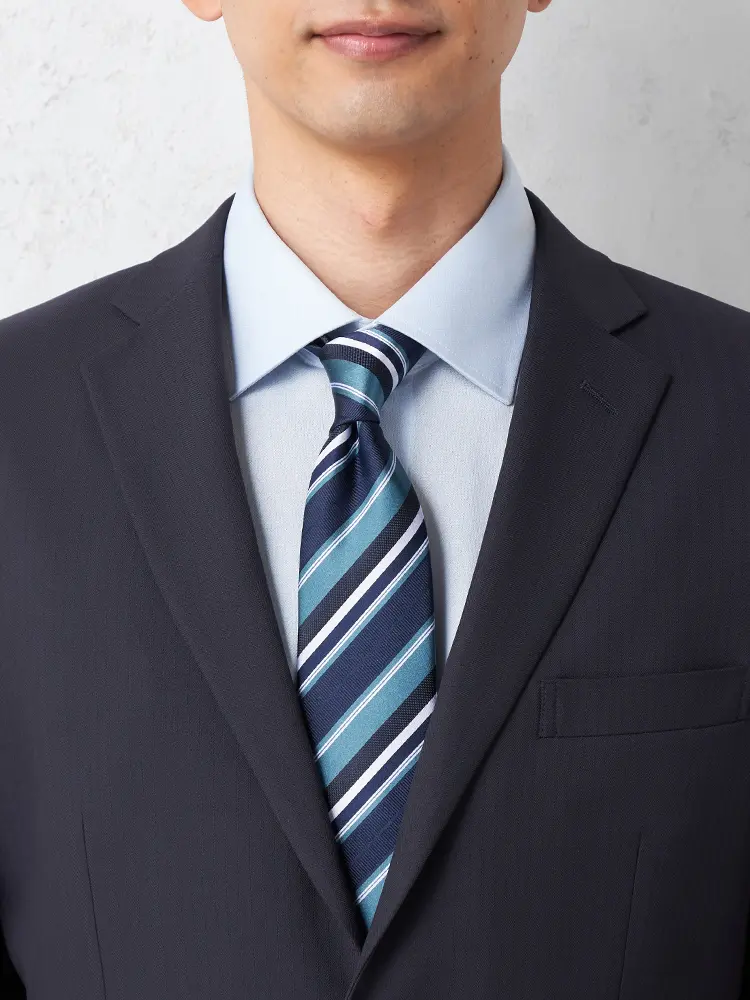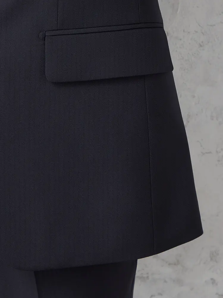清潔感と上品さを兼ね備えた、シャープなストライプ柄スーツです。