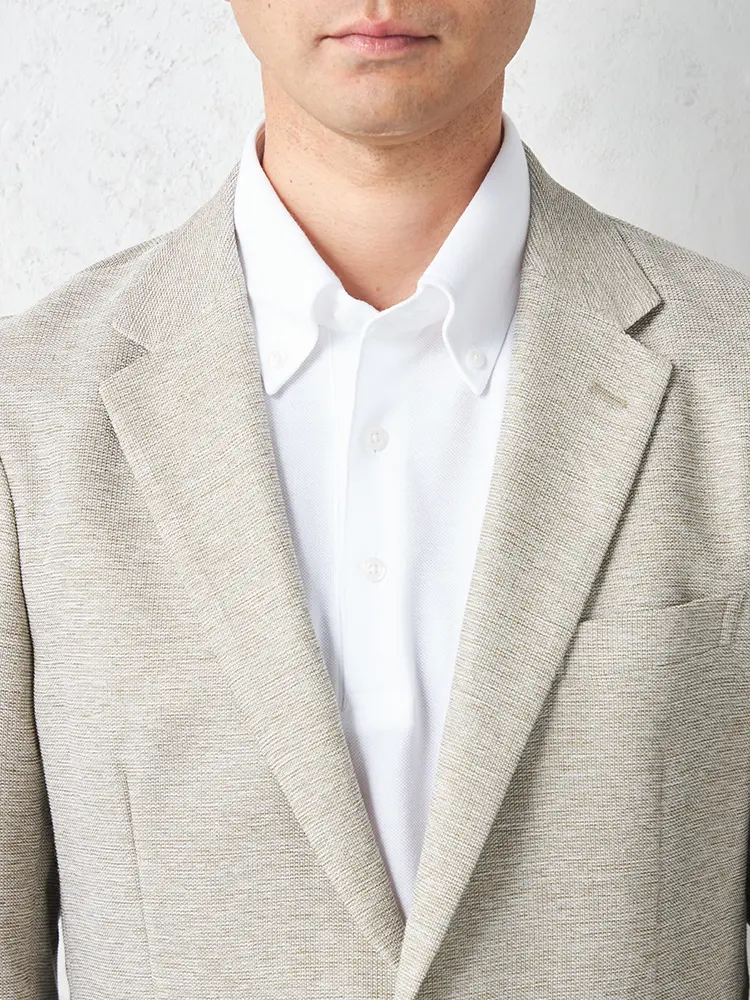 春夏シーズンに最適な明るいトーンの2つボタンジャケット。