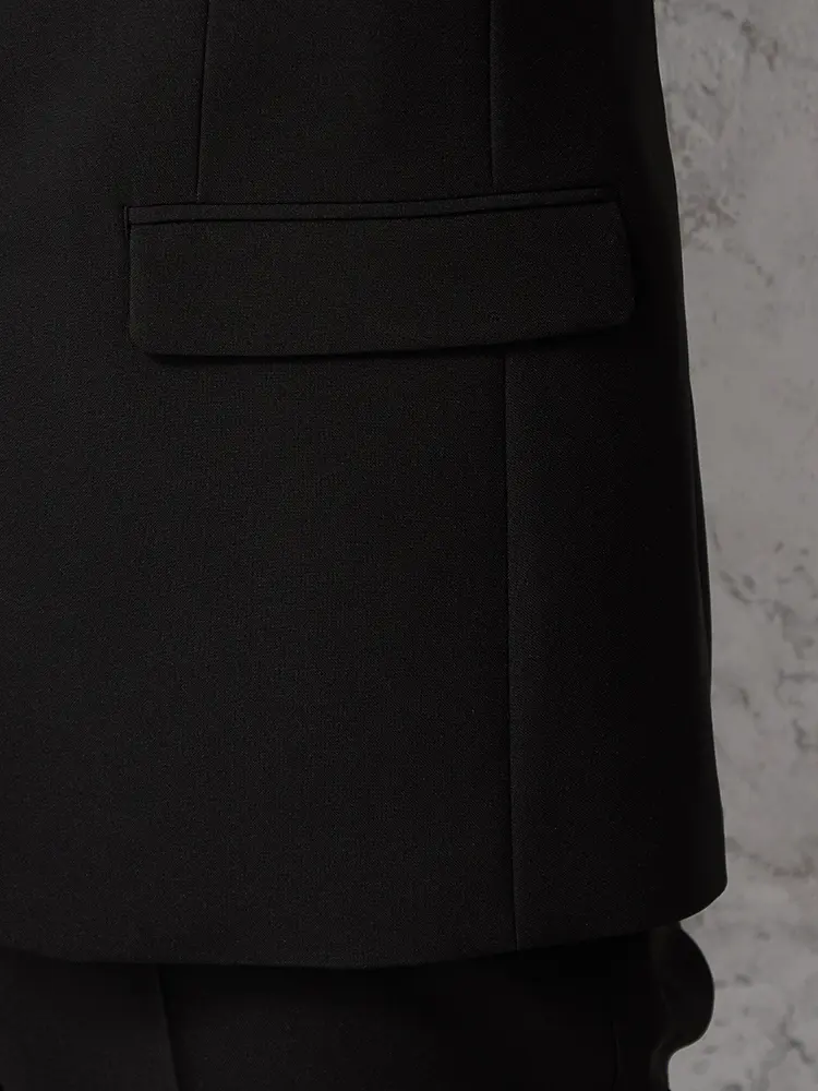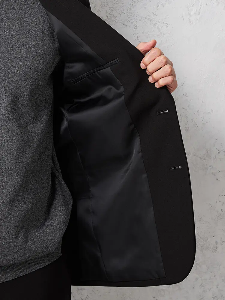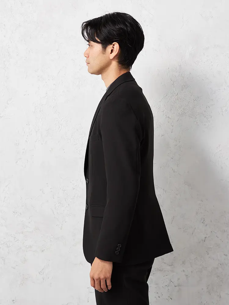 切り込みが1本のセンターベントデザインです。細身でスッキリとしたシルエットが特徴で、快適な着心地を提供します