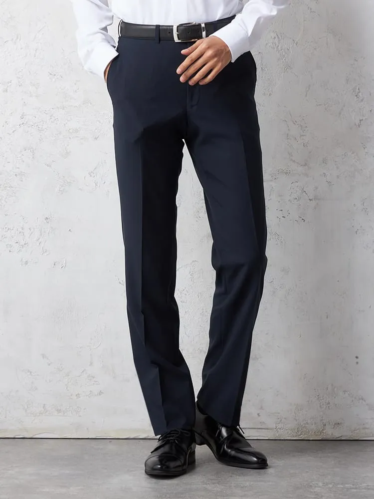 パンツの腰回りに生地の折り込みがなく、スッキリとしたシルエットを実現します。シンプルで洗練された印象を与え、すっきりとした着こなしが可能です。