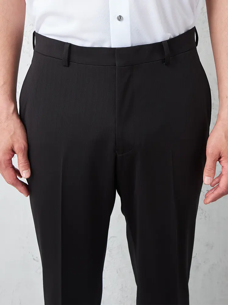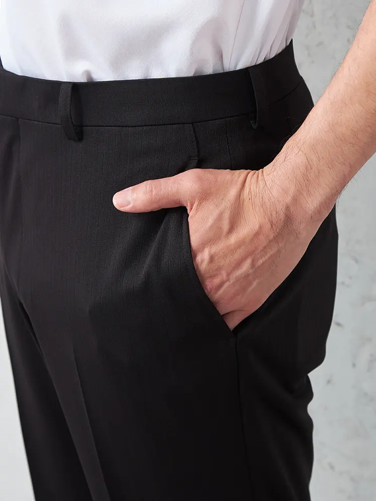 【4wayストレッチ】パンツノータックドライパンツ膝あて清涼裏地シャドウストライプnero春夏【スリムデザイン】