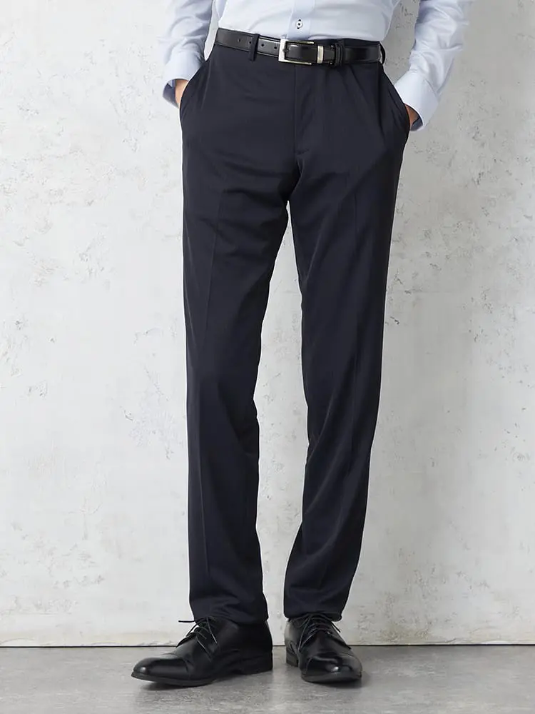 【スマビズパンツ】ノータックスラックスパンツ織柄無地ストレッチウォッシャブル春夏