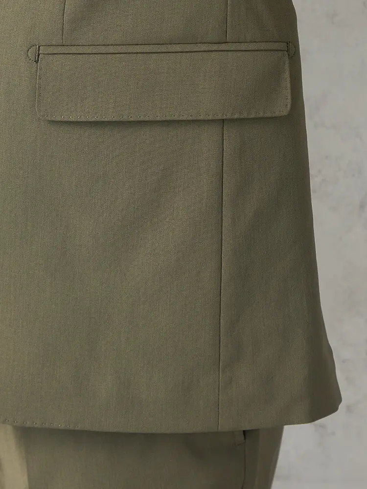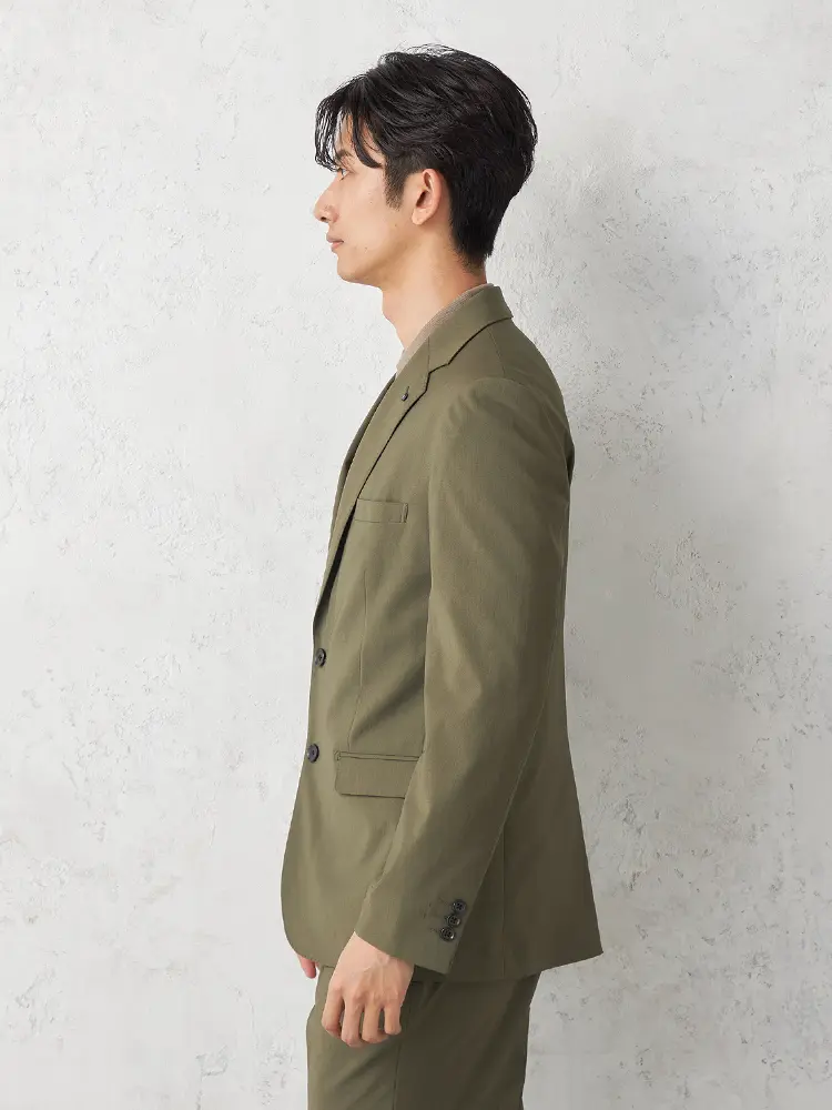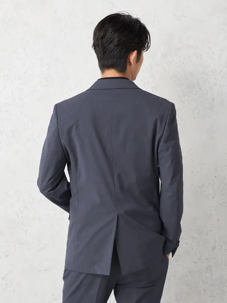 動きやすいストレッチ性に加え、センターベント、軽やかな半裏仕立てを採用。