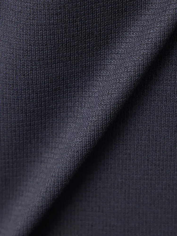 動きやすいストレッチ性を備えたニット素材を採用し、センターベントと半裏仕立てで軽快な着心地を実現。