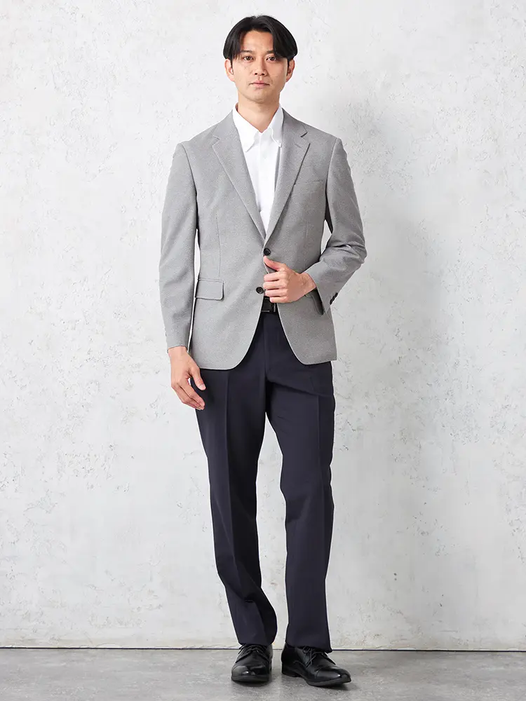 清潔感溢れるライトグレーのテーラードジャケット。